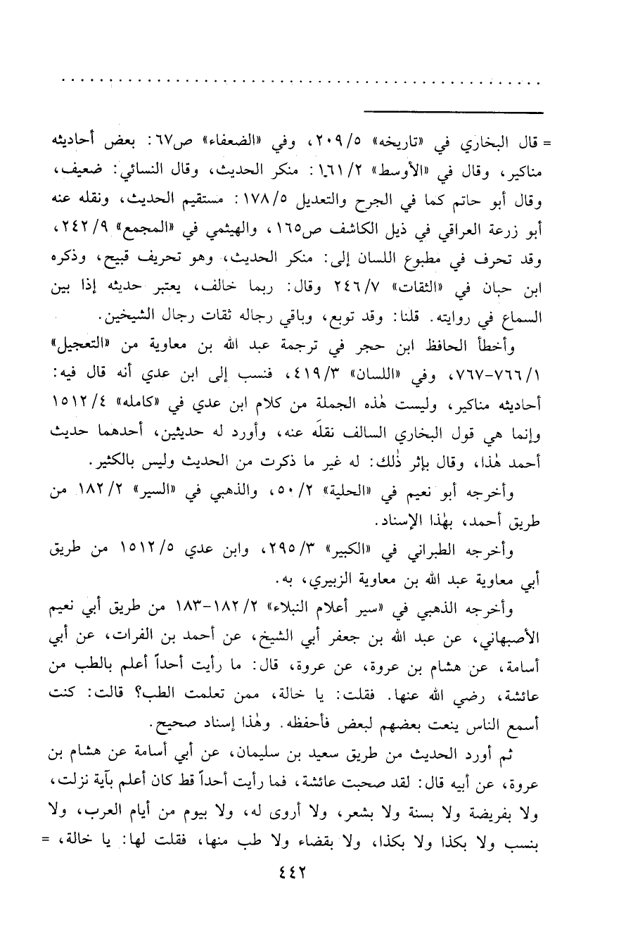 = قال البخاري في "تاريخه" ٥/٢٠٩، وفي "الضعفاء" ص٦٧: بعض أحاديثه مناكير، وقال في "الأوسط" ٢/١٦١: منكر الحديث، وقال النسائي: ضعيف، وقال أبو حاتم كما في "الجرح والتعديل" ٥/١٧٨: مستقيم الحديث، ونقله عنه أبو زرعة العراقي في "ذيل الكاشف" ص١٦٥، والهيثمي في "المجمع" ٩/٢٤٢، وقد تحرف في مطبوع اللسان إلى: منكر الحديث، وهو تحريف قبيح، وذكره