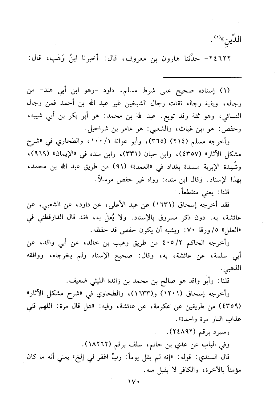 ٢٤٦٢٢ - حَدَّثَنَا هَارُونُ بْنُ مَعْرُوفٍ، قَالَ: أَخْبَرَنَا ابْنُ وَهْبٍ، قَالَ: