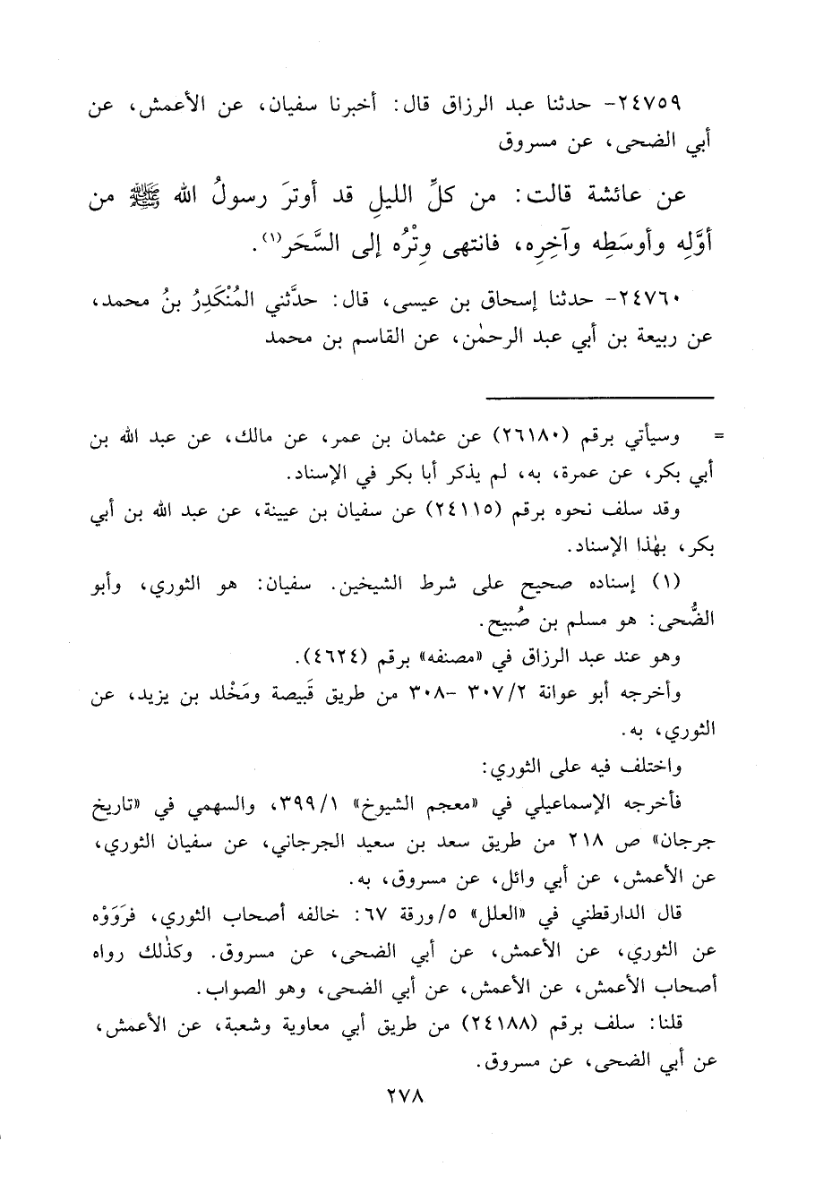 قلنا: سلف برقم (٢٤١٨٨) من طريق أبي معاوية وشعبة، عن الأعمش، عن أبي الضحى، عن مسروق.