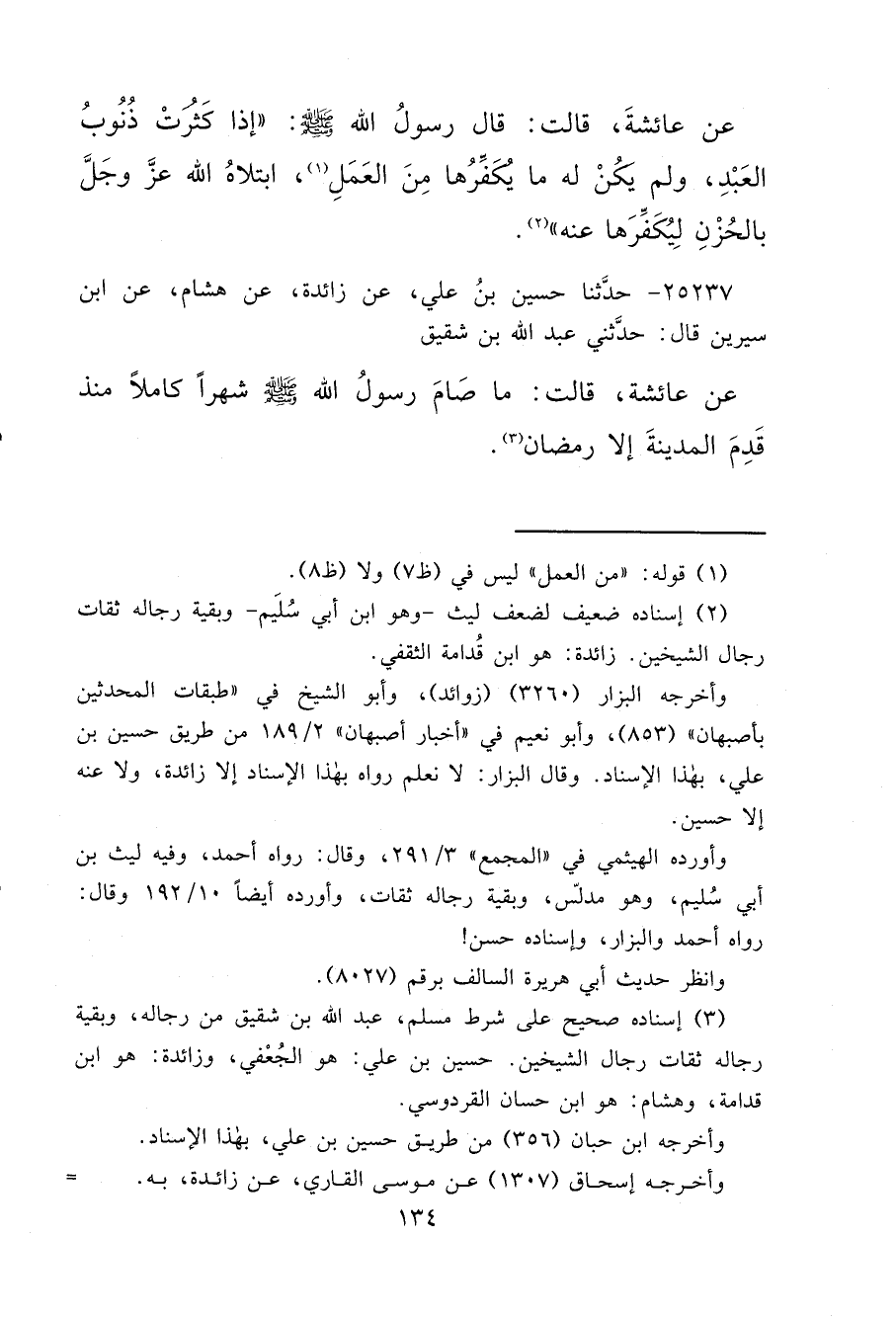 (٣) إسناده صحيح على شرط مسلم، عبد الله بن شقيق من رجاله، وبقية رجاله ثقات رجال الشيخين. حسين بن علي: هو الجُعْفي، وزائدة: هو ابن قدامة، وهشام: هو ابن حسان القردوسي.