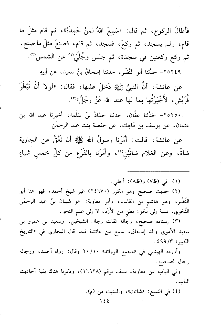 (٢) حديث صحيح وهو مكرر (٢٤٦٧٠) غير شيخ أحمد، فهو هنا أبو النَّضْر، وهو هاشمِ بن القاسم، وأبو معاوية: هو شيبان بنُ عبد الرحمن النَّحْوي، نسبة إلى نَحْو: بطنٍ من الأَزْد، لا إلى علم النحو.