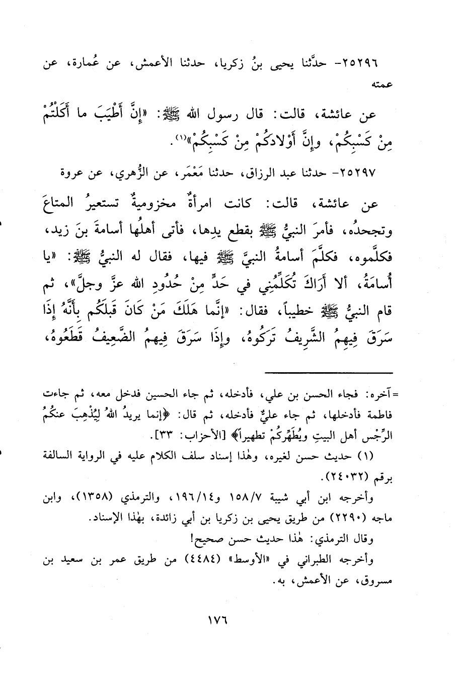 ٢٥٢٩٦ - حَدَّثَنَا يَحْيَى بْنُ زَكَرِيَّا، حَدَّثَنَا الْأَعْمَشُ، عَنْ عُمَارَةَ، عَنْ عَمَّتِهِ، عَنْ عَائِشَةَ، قَالَتْ: قَالَ رَسُولُ اللهِ صَلَّى اللهُ عَلَيْهِ وَسَلَّمَ: " إِنَّ أَطْيَبَ مَا أَكَلْتُمْ مِنْ كَسْبِكُمْ، وَإِنَّ أَوْلَادَكُمْ مِنْ كَسْبِكُمْ " (١)