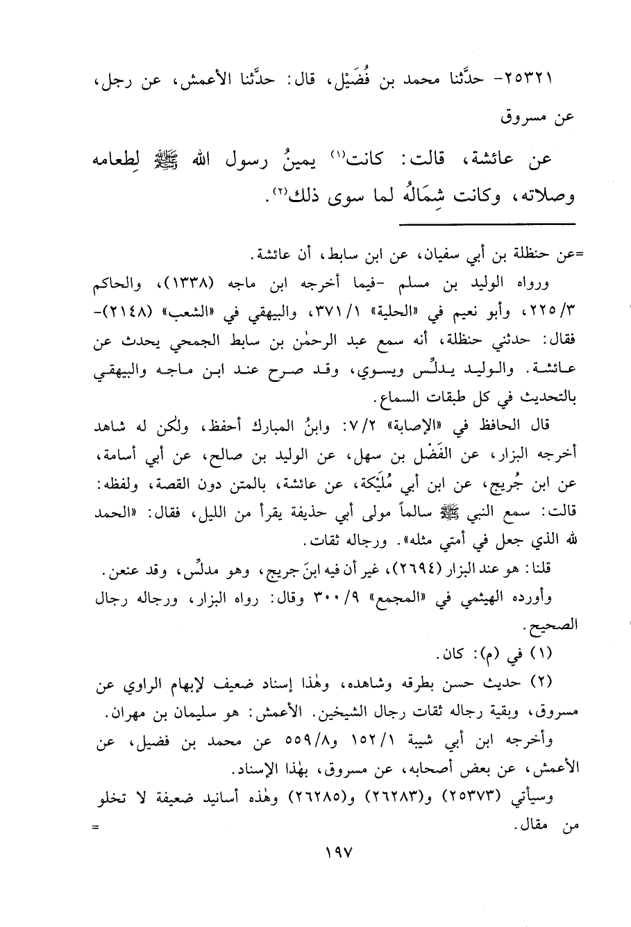 (٢) حديث حسن بطرقه وشاهده، وهذا إسناد ضعيف لإبهام الراوي عن مسروق، وبقية رجاله ثقات رجال الشيخين. الأعمش: هو سليمان بن مهران.