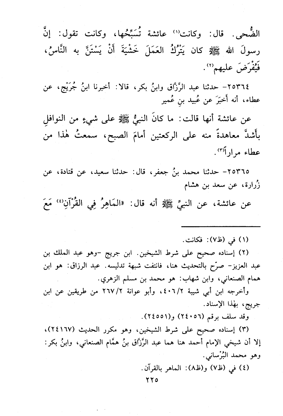 ٢٥٣٦٤ - حَدَّثَنَا عَبْدُ الرَّزَّاقِ، وَابْنُ بَكْرٍ، قَالَا: أَخْبَرَنَا ابْنُ جُرَيْجٍ، عَنْ عَطَاءٍ، أَنَّهُ أَخْبَرَ عَنْ عُبَيْدِ بْنِ عُمَيْرٍ، عَنْ عَائِشَةَ، أَنَّهَا قَالَتْ: " مَا كَانَ النَّبِيُّ صَلَّى اللهُ عَلَيْهِ وَسَلَّمَ عَلَى شَيْءٍ مِنَ النَّوَافِلِ بِأَشَدَّ مُعَاهَدَةً مِنْهُ عَلَى الرَّكْعَتَيْنِ أَمَامَ الصُّبْحِ " سَمِعْتُ هَذَا مِنْ عَطَاءٍ، مِرَارًا (٣)