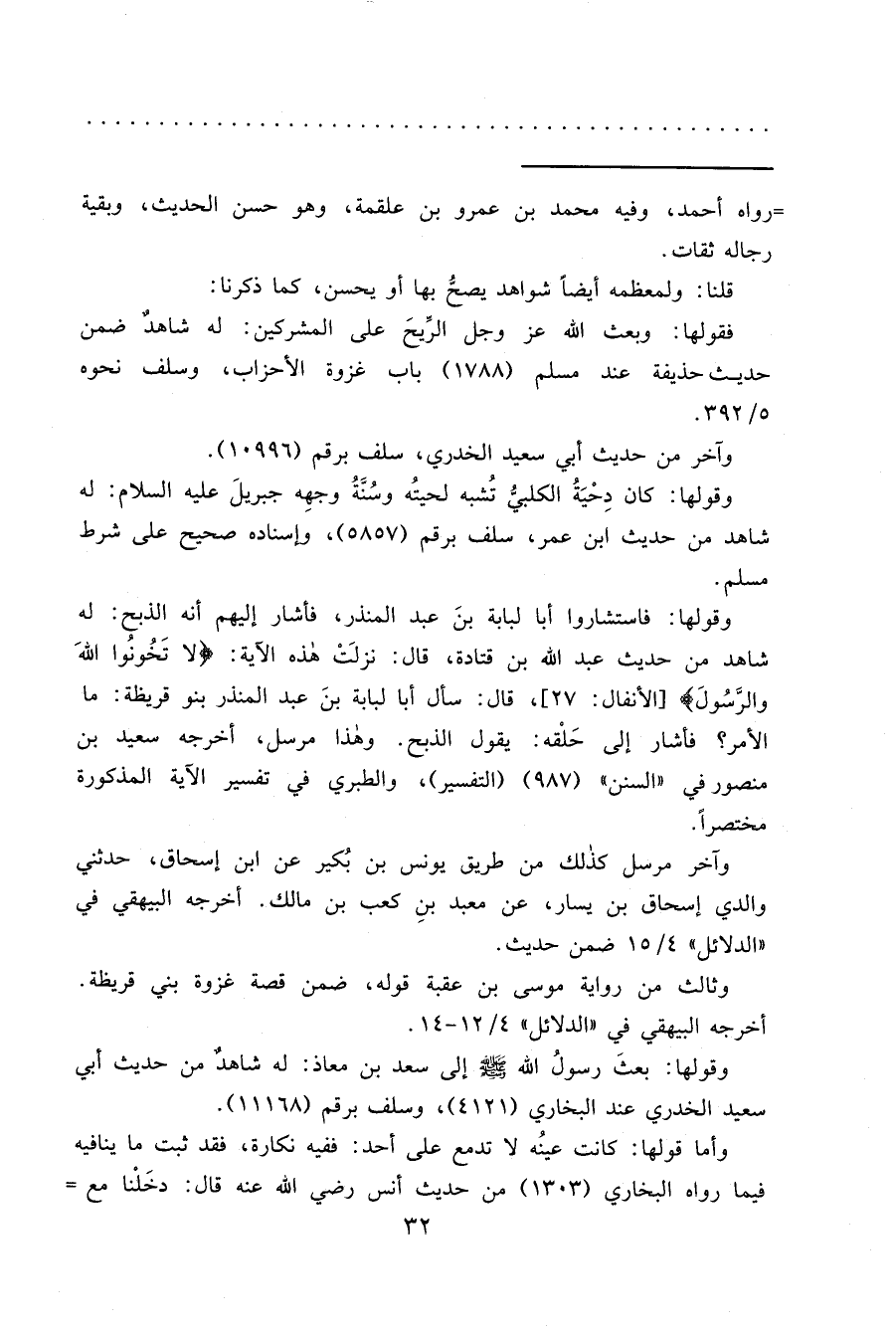 قلنا: ولمعظمه أيضاً شواهد يصح بها أو يحسن، كما ذكرنا: