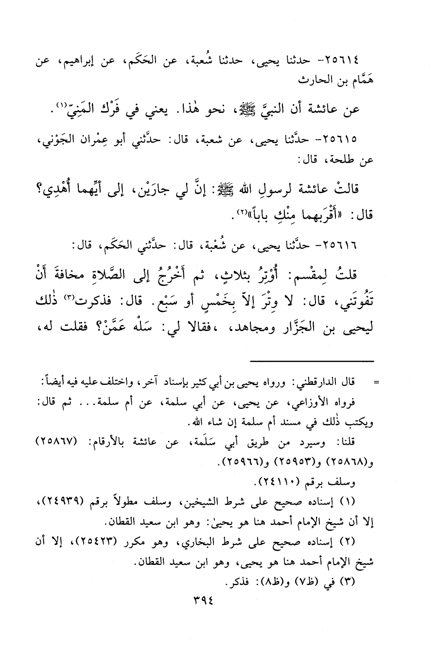 قلنا: وسيرد من طريق أبي سَلَمة، عن عائشة بالأرقام: (٢٥٨٦٧) و (٢٥٨٦٨) و (٢٥٩٥٣) و (٢٥٩٦٦) .