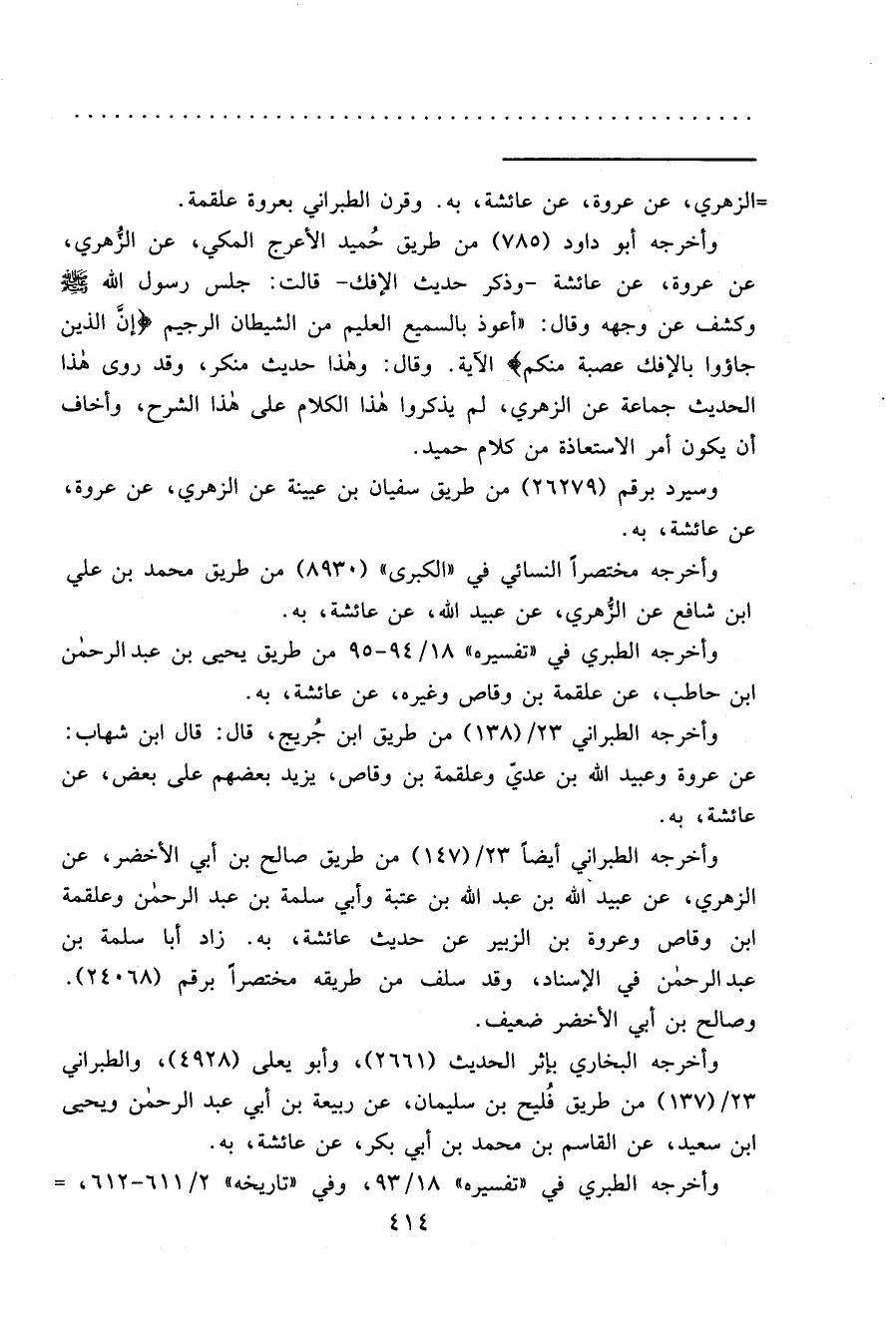 وأخرجه أبو داود (٧٨٥) من طريق حُميد الأعرج المكي، عن الزُّهري، عن عروة، عن عائشة -وذكر حديث الإفك- قالت: جلس رسول الله صَلَّى اللهُ عَلَيْهِ وَسَلَّمَ وكشف عن وجهه وقال: "أعوذ بالسميع العليم من الشيطان الرجيم (إنَّ الذين جاؤوا بالإفك عصبة منكم) الآية. وقال: وهذا حديث منكر، وقد روى هذا الحديث جماعة عن الزهري، لم يذكروا هذا الكلام على هذا الشرح، وأخاف