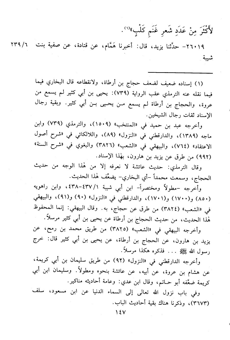 لِأَكْثَرَ مِنْ عَدَدِ شَعَرِ غَنَمِ كَلْبٍ " (١)