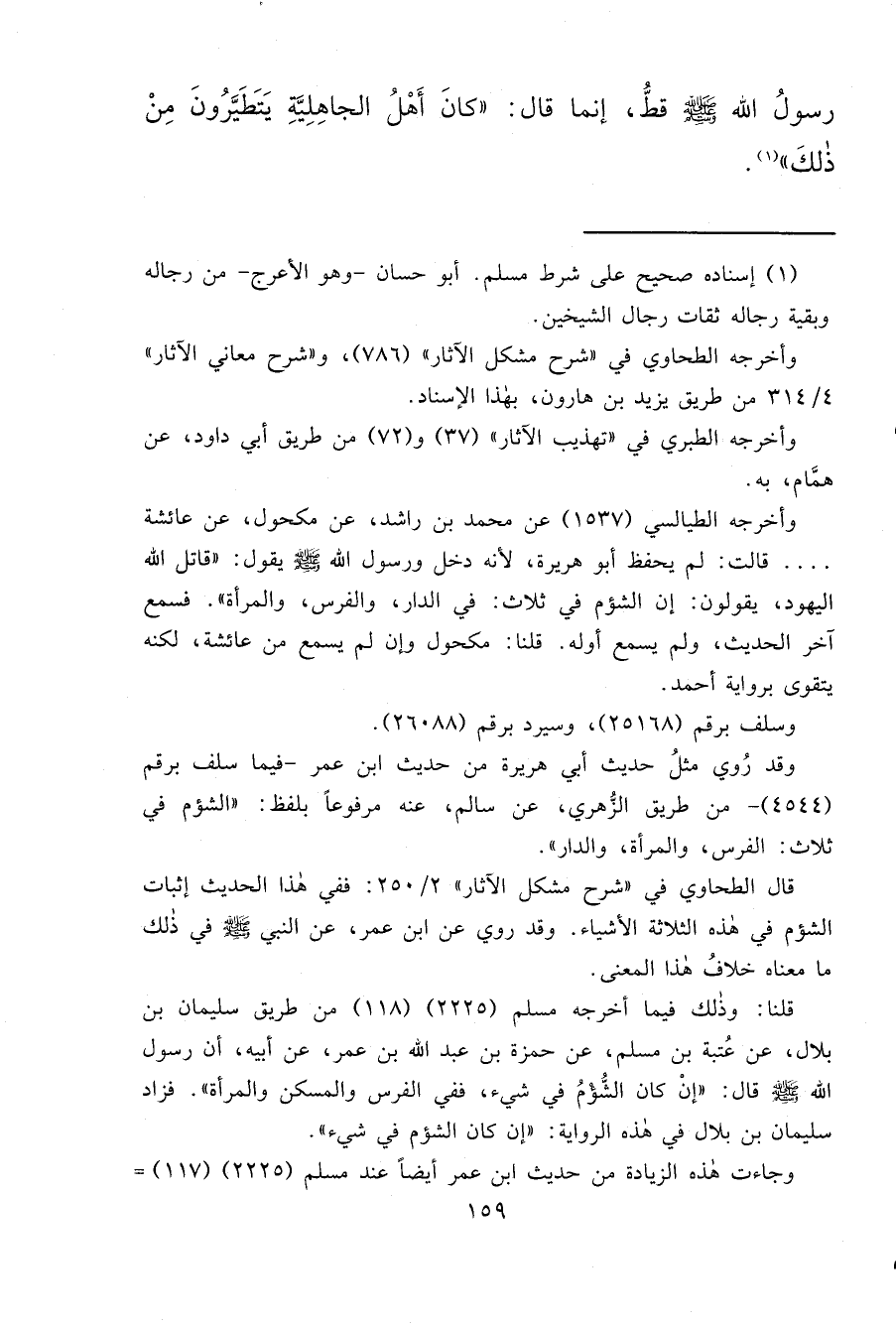 رَسُولُ اللهِ صَلَّى اللهُ عَلَيْهِ وَسَلَّمَ قَطُّ، إِنَّمَا قَالَ: " كَانَ أَهْلُ الْجَاهِلِيَّةِ يَتَطَيَّرُونَ مِنْ ذَلِكَ " (١)