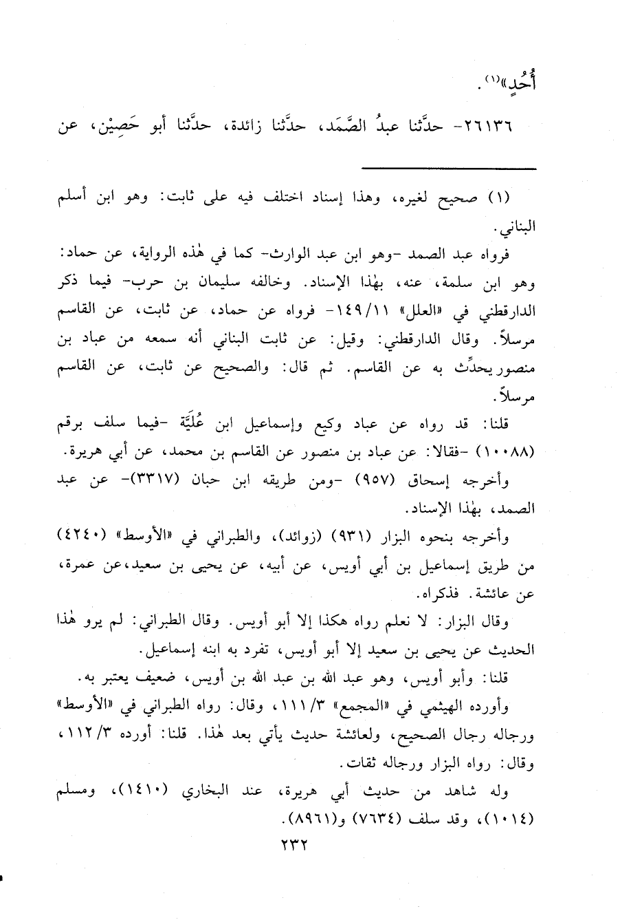 ٢٦١٣٦ - حَدَّثَنَا عَبْدُ الصَّمَدِ، حَدَّثَنَا زَائِدَةُ، حَدَّثَنَا أَبُو حَصِينٍ، عَنْ