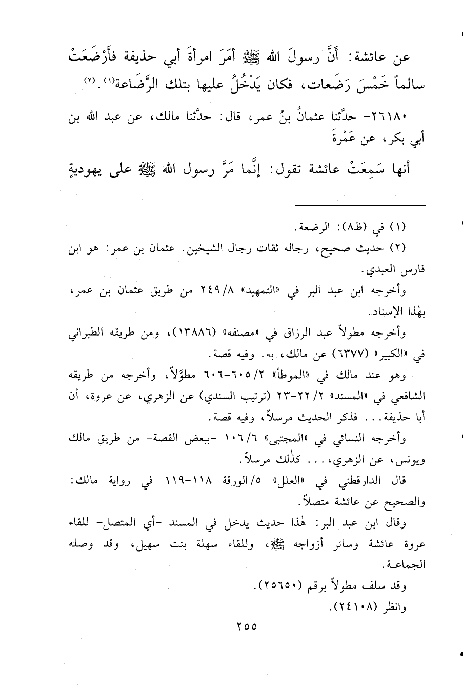 (٢) حديث صحيح، رجاله ثقات رجال الشيخين. عثمان بن عمر: هو ابن فارس العبدي.