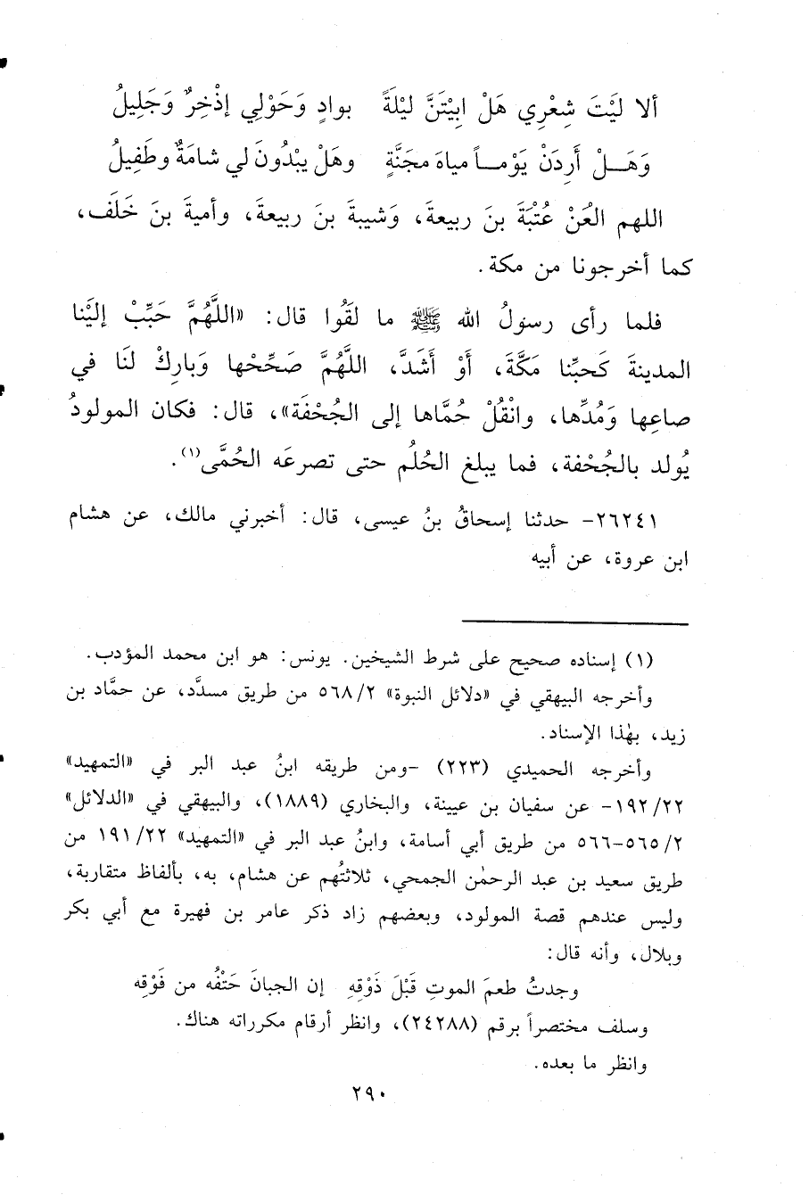 وأخرجه الحميدي (٢٢٣) - ومن طريقه ابنُ عبد البر في "التمهيد" ٢٢/٩٢ - عن سفيان بن عيينة، والبخاري (١٨٨٩) ، والبيهقي في "الدلائل" ٢/٥٦٥-٥٦٦ من طريق أبي أسامة، وابنُ عبد البر في "التمهيد" ٢٢/١٩١ من طريق سعيد بن عبد الرحمن الجمحي، ثلاثتُهم عن هشام، به، بألفاظ متقاربة،