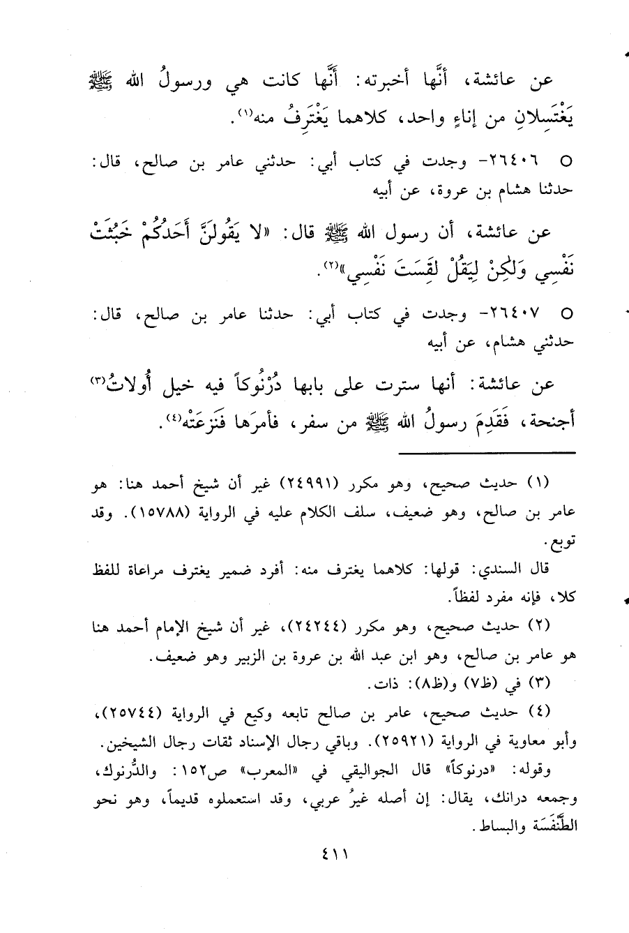 (٤) حديث صحيح، عامر بن صالح تابعه وكيع في الرواية (٢٥٧٤٤) ، وابو معاوية في الرواية (٢٥٩٢١) . وباقي رجال الإسناد ثقات رجال الشيخين.
