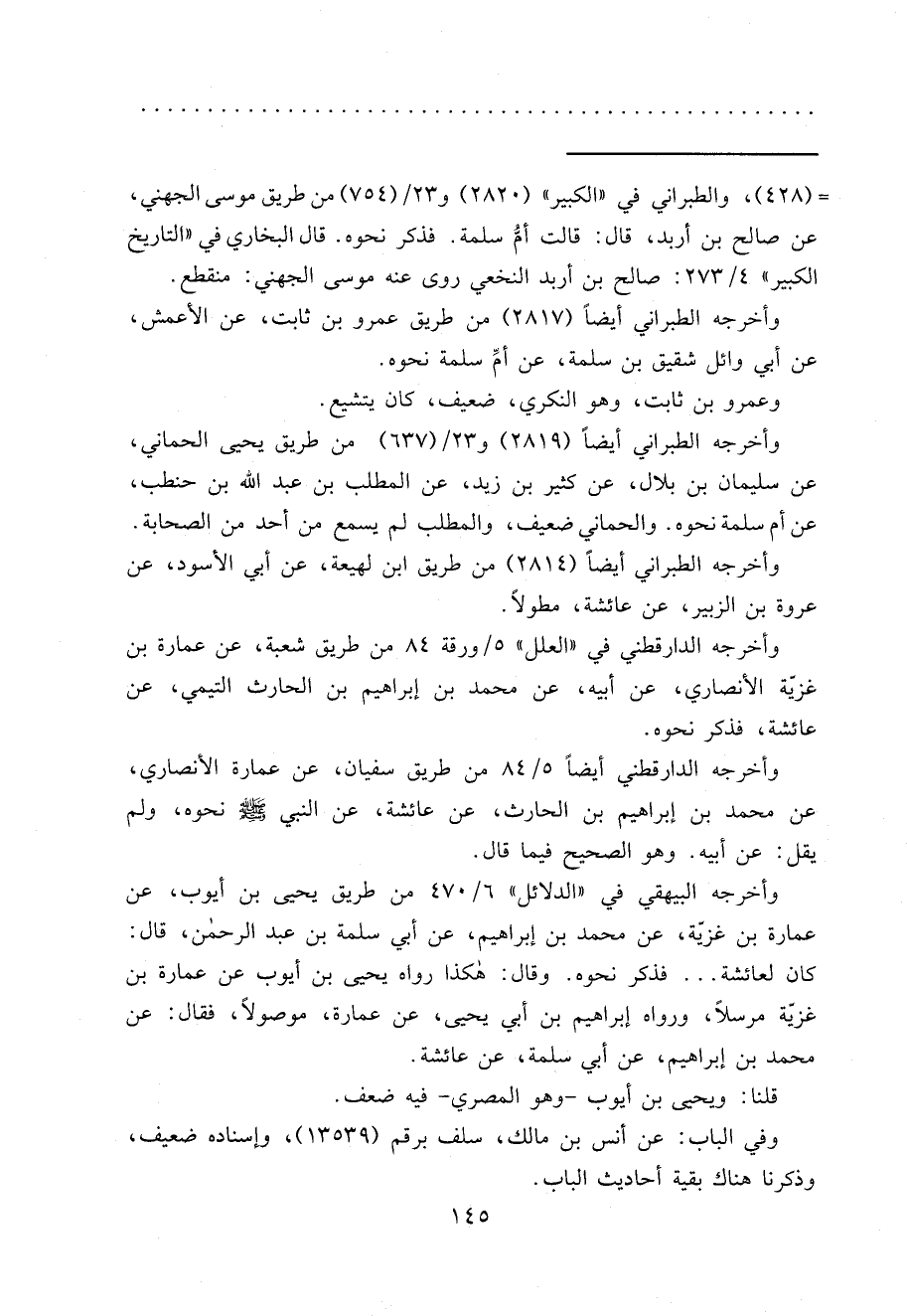 وأخرجه الدارقطني أيضاً ٥/٨٤ من طريق سفيان، عن عمارة الأنصاري، عن محمد بن إبراهيم بن الحارث، عن عائشة، عن النبي صَلَّى اللهُ عَلَيْهِ وَسَلَّمَ نحوه، ولم يقل: عن أبيه. وهو الصحيح فيما قال.