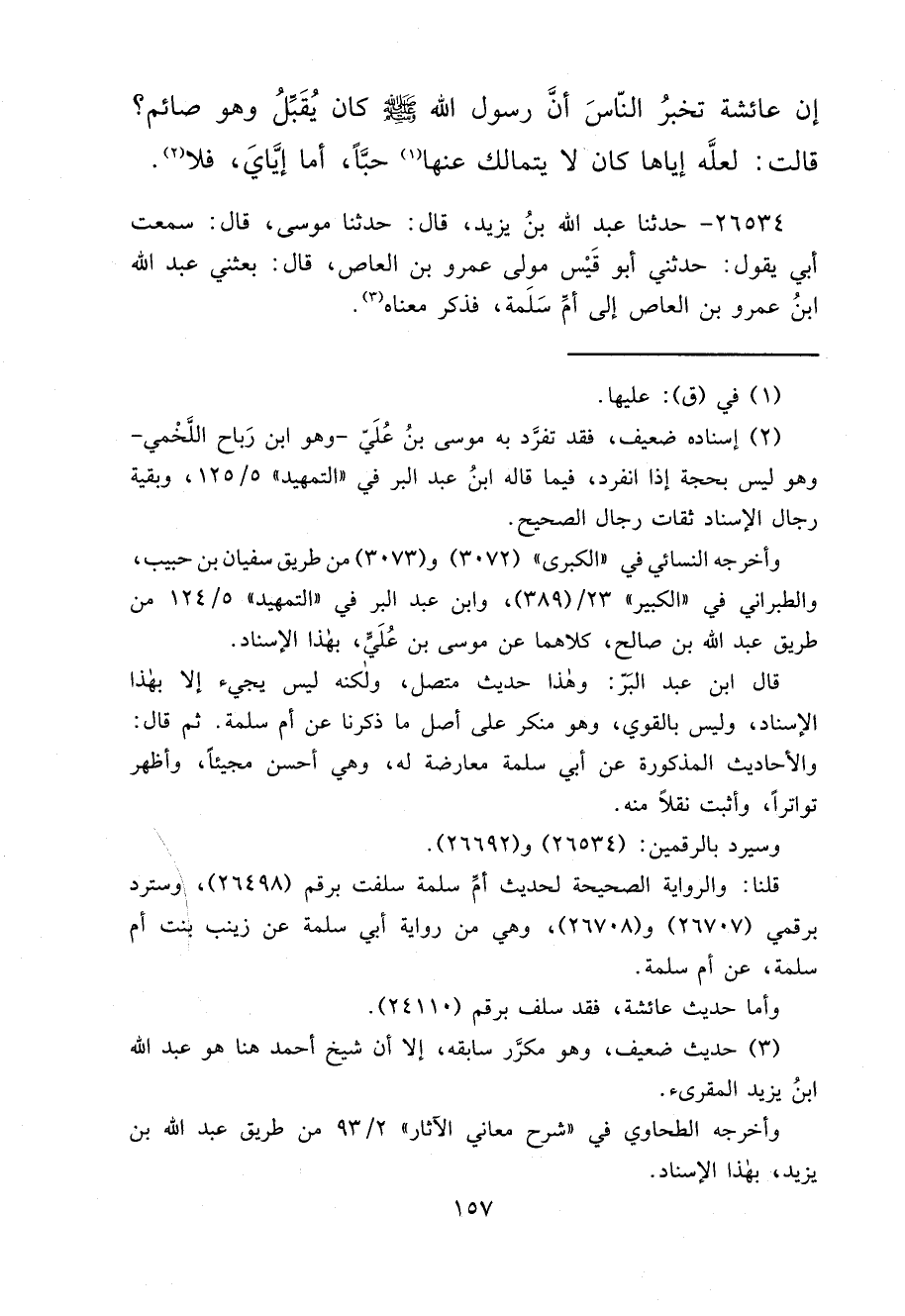 ٢٦٥٣٤ - حَدَّثَنَا عَبْدُ اللهِ بْنُ يَزِيدَ، قَالَ: حَدَّثَنَا مُوسَى، قَالَ: سَمِعْتُ أَبِي، يَقُولُ: حَدَّثَنِي أَبُو قَيْسٍ مَوْلَى عَمْرِو بْنِ الْعَاصِ قَالَ: بَعَثَنِي عَبْدُ اللهِ بْنُ عَمْرِو بْنِ الْعَاصِ إِلَى أُمِّ سَلَمَةَ فَذَكَرَ مَعْنَاهُ (٣)