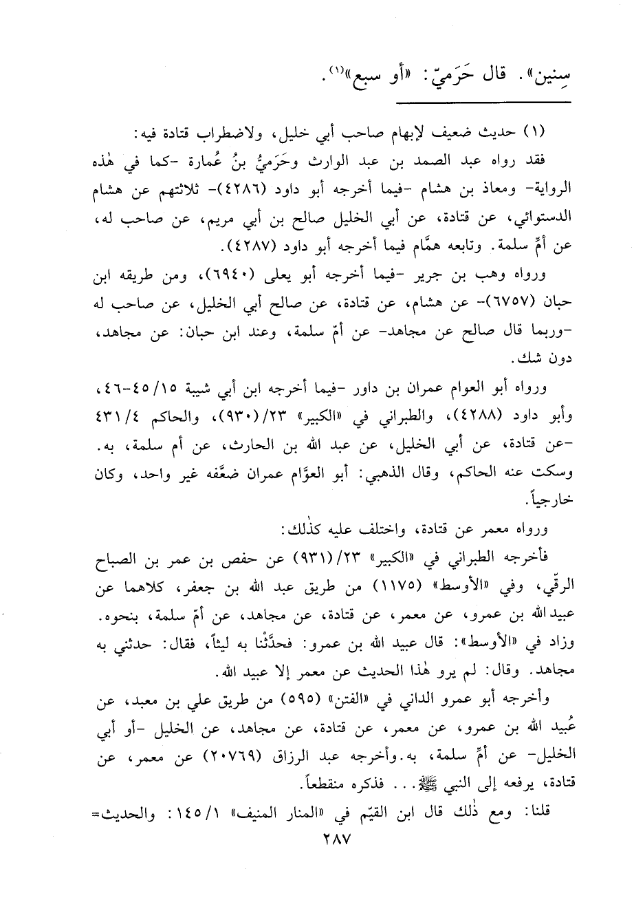 سِنِينَ " قَالَ حَرَمِيٌّ: " أَوْ سَبْعَ " (١)