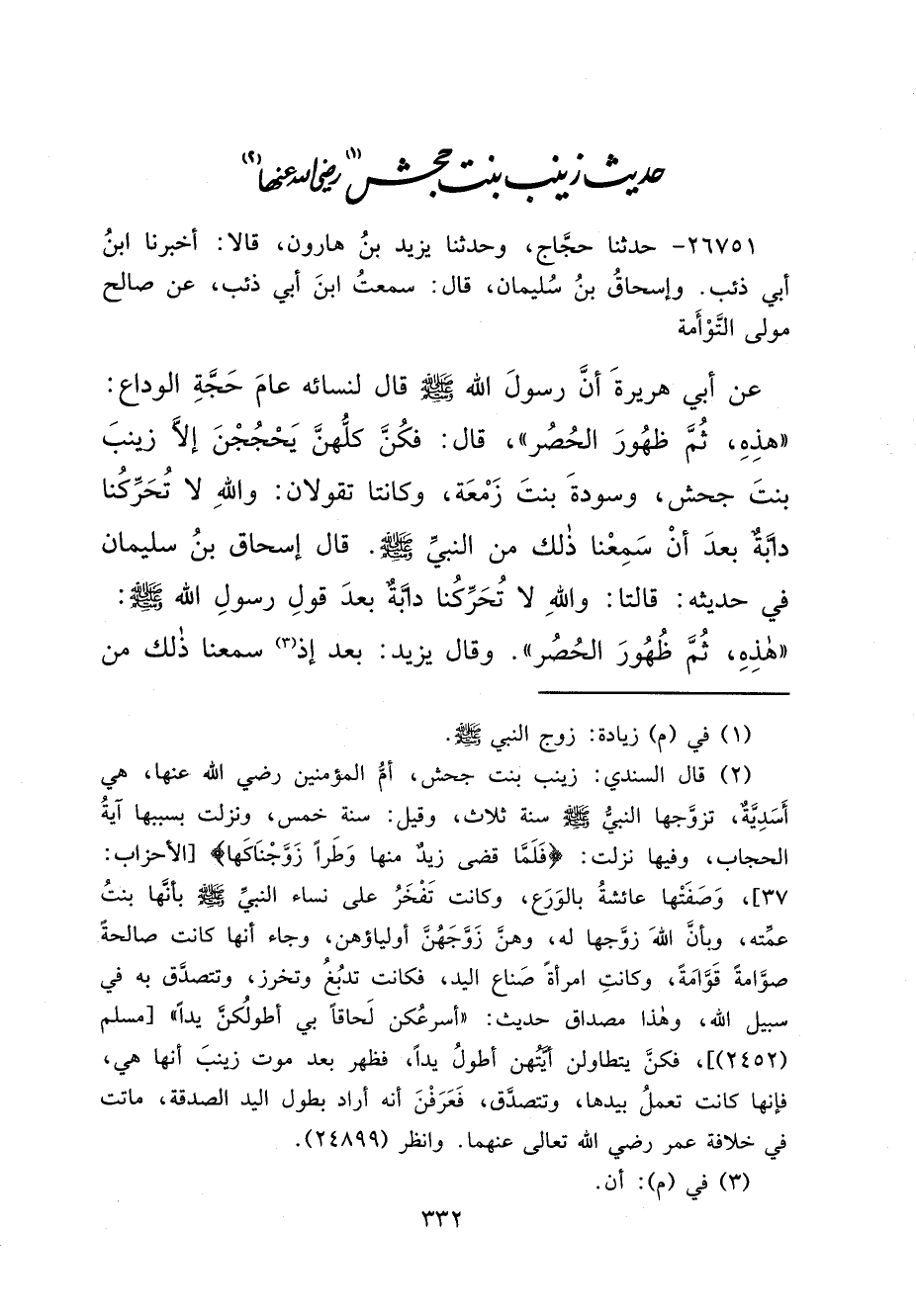 حَدِيثُ زَيْنَبَ بِنْتِ جَحْشٍ (١) رَضِيَ اللهُ عَنْهَا (٢)