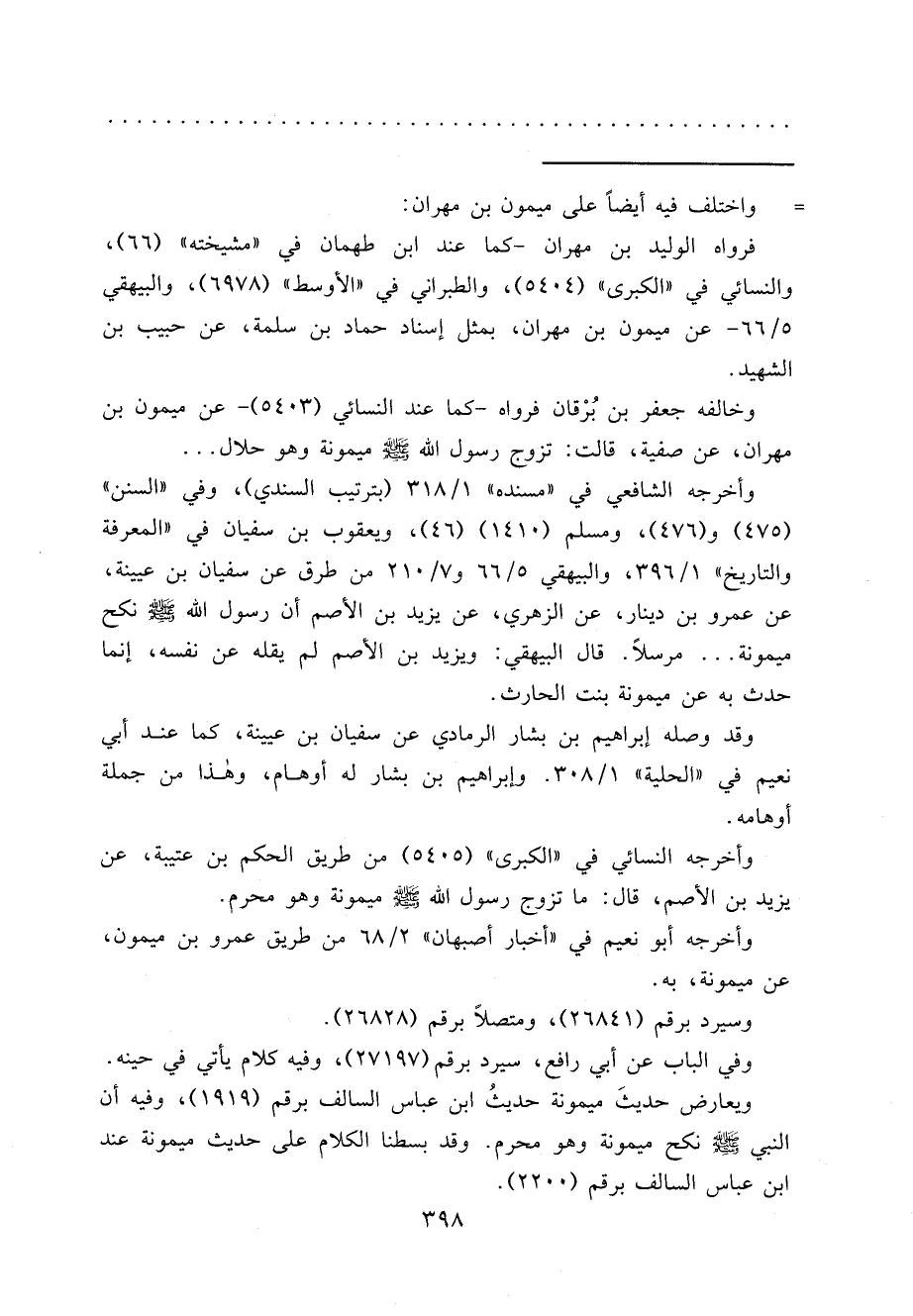 وخالفه جعفر بن بُرْقان فرواه - كما عند النسائي (٥٤٠٣) - عن ميمون بن مهران، عن صفية، قالت: تزوج رسول الله صَلَّى اللهُ عَلَيْهِ وَسَلَّمَ ميمونة وهو حلال ...