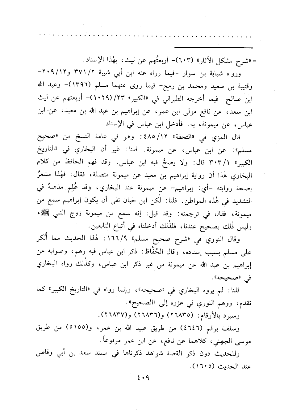 قال المزي في "التحفة" ١٢/٤٨٥: وهو في عامة النسخ من "صحيح مسلم": عن ابن عباس، عن ميمونة. قلنا: غير أن البخاري في "التاريخ الكبير" ١/٣٠٣ قال: ولا يصحُّ فيه ابن عباس. وقد فهم الحافظ من كلام البخاري هذا أن رواية إبراهيم بن معبد عن ميمونة متصلة، فقال: فهذا مشعرٌ