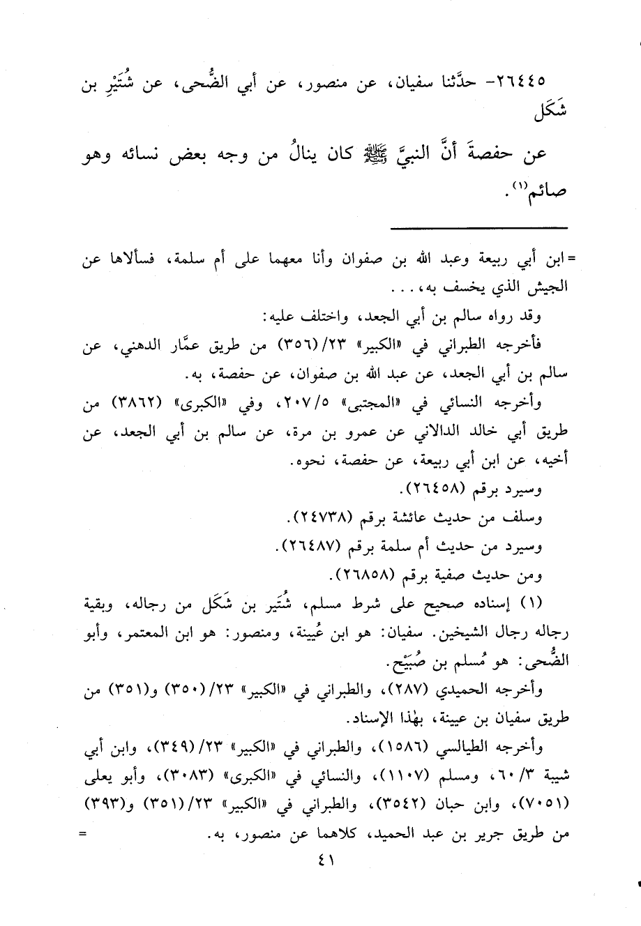 ومن حديث صفية برقم (٢٦٨٥٨) .