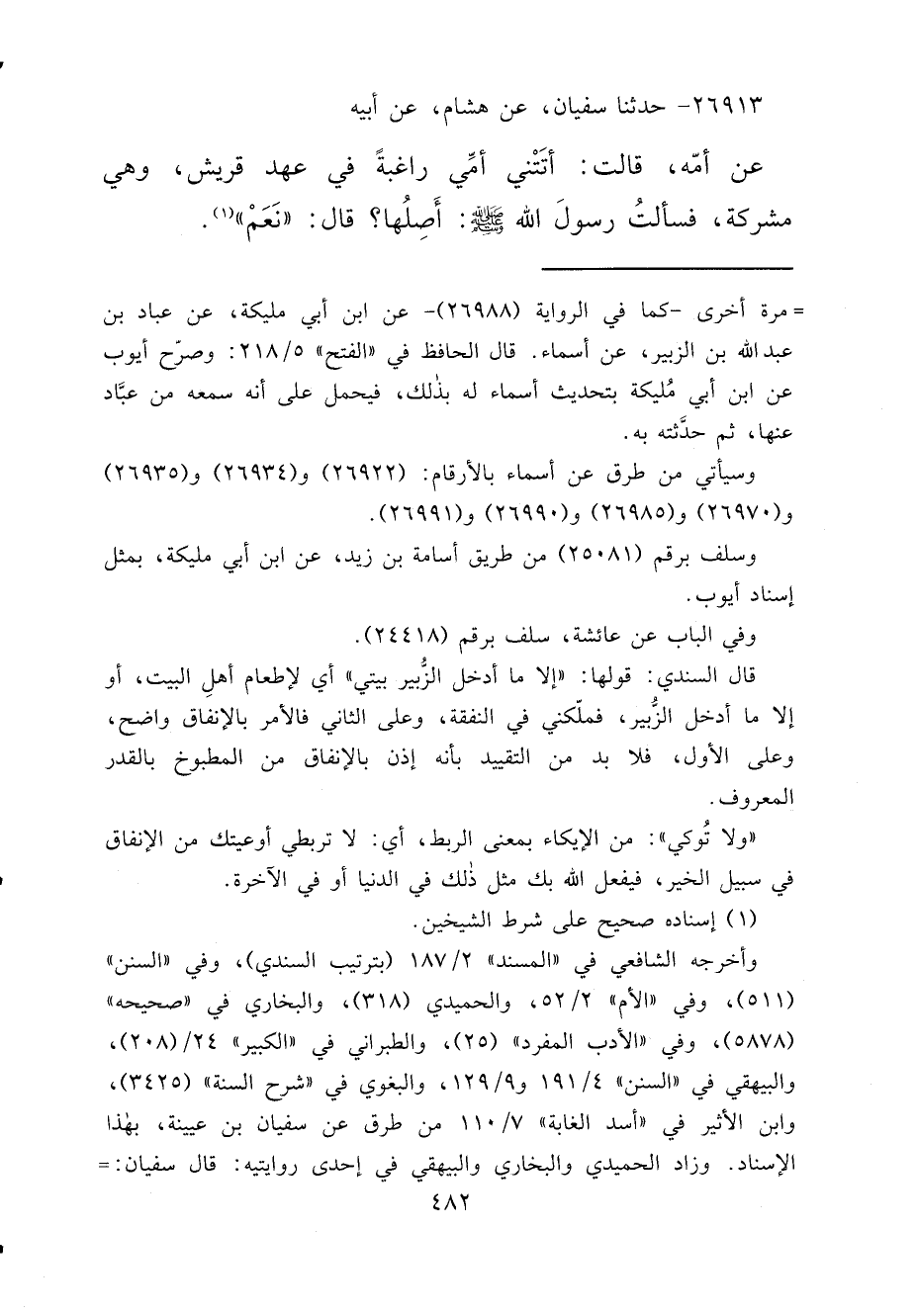وسيأتي من طرق عن أسماء بالأرقام: (٢٦٩٢٢) و (٢٦٩٣٤) و (٢٦٩٣٥) و (٢٦٩٧٠) و (٢٦٩٨٥) و (٢٦٩٩٠) و (٢٦٩٩١) .