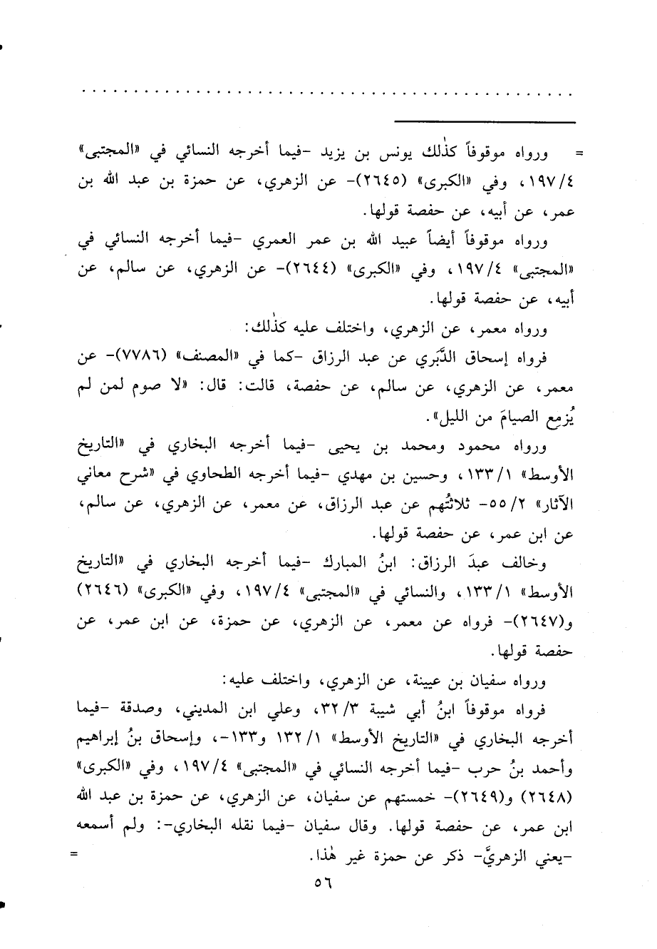 =ورواه موقوفاً كذلك يونس بن يزيد - فيما أخرجه النسائي في "المجتبى" ٤/١٩٧، وفي "الكبرى" (٢٦٤٥) - عن الزهري، عن حمزة بن عبد الله بن عمر، عن أبيه، عن حفصة قولها.