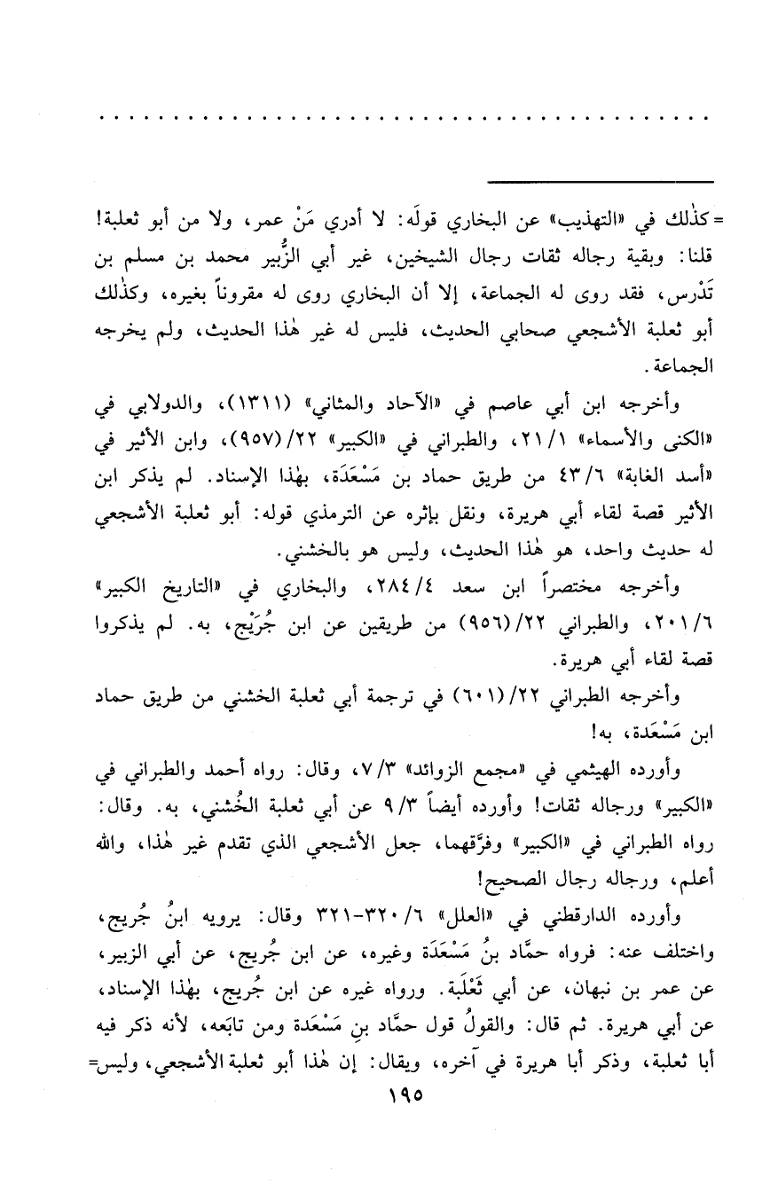 = كذلك في "التهذيب" عن البخاري قولَه: لا أدري مَنْ عمر، ولا من أبو ثعلبة!