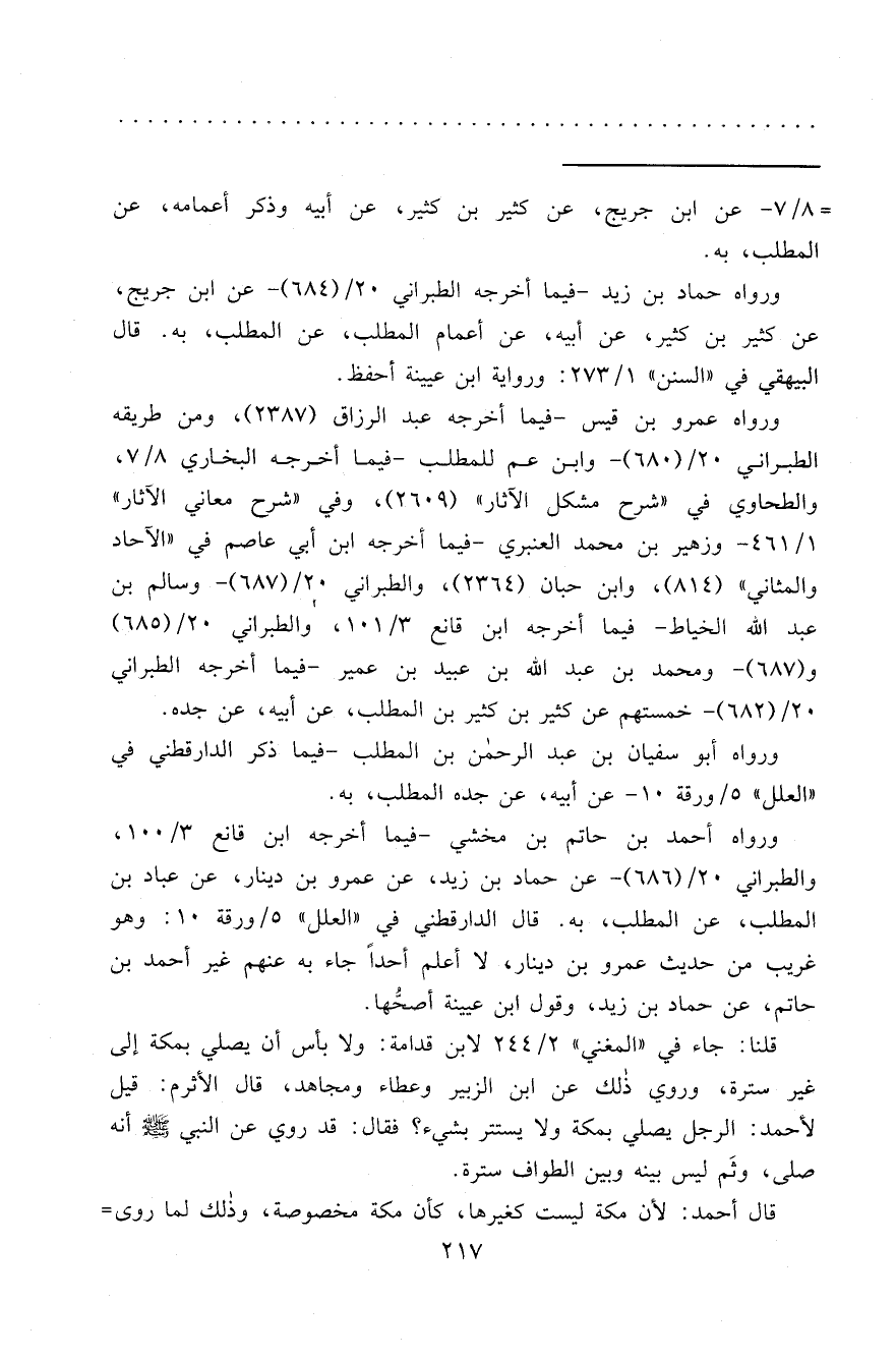 = ٨/٧- عن ابن جريج، عن كثير بن كثير، عن أبيه وذكر أعمامه، عن المطلب، به.