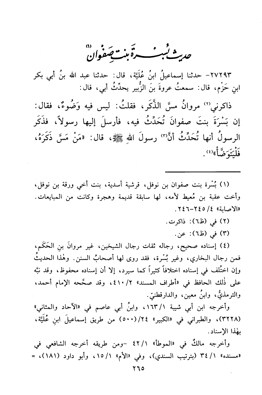 حَدِيثُ بُسْرَةَ بِنْتِ صَفْوَانَ (١)