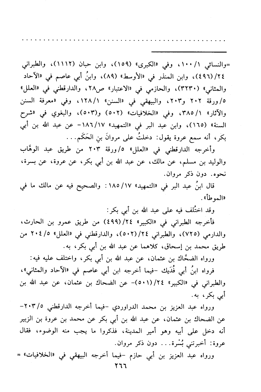 وأخرجه الدارقطني في "العلل" ٥/ورقة ٢٠٣ من طريق عبد الوهَّاب والوليد بن مسلم، عن مالك، عن عبد الله بن أبي بكر، عن عروة، عن بسرة، نحوه. دون ذكر مروان.