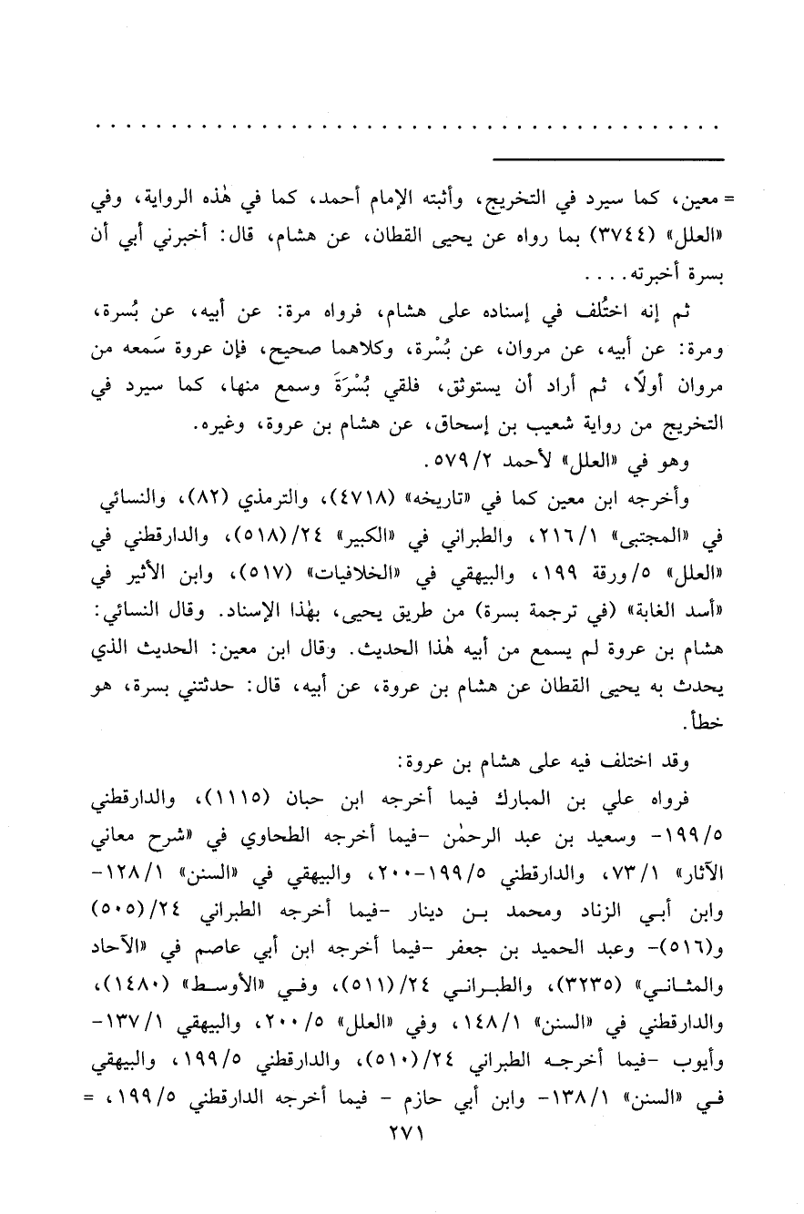 وأخرجه ابن معين كما في "تاريخه" (٤٧١٨) ، والترمذي (٨٢) ، والنسائي في "المجتبى" ١/٢١٦، والطبراني في "الكبير" ٢٤/ (٥١٨) ، والدارقطني في "العلل" ٥/ورقة ١٩٩، والبيهقي في "الخلافيات " (٥١٧) ، وابن الأثير في "أسد الغابة" (في ترجمة بسرة) من طريق يحيى، بهذا الإسناد. وقال النسائي: هشام بن عروة لم يسمع من أبيه هذا الحديث. وقال ابن معين: الحديث الذي يحدث به يحيى القطان عن هشام بن عروة، عن أبيه، قال: حدثتني بسرة، هو خطأ.
