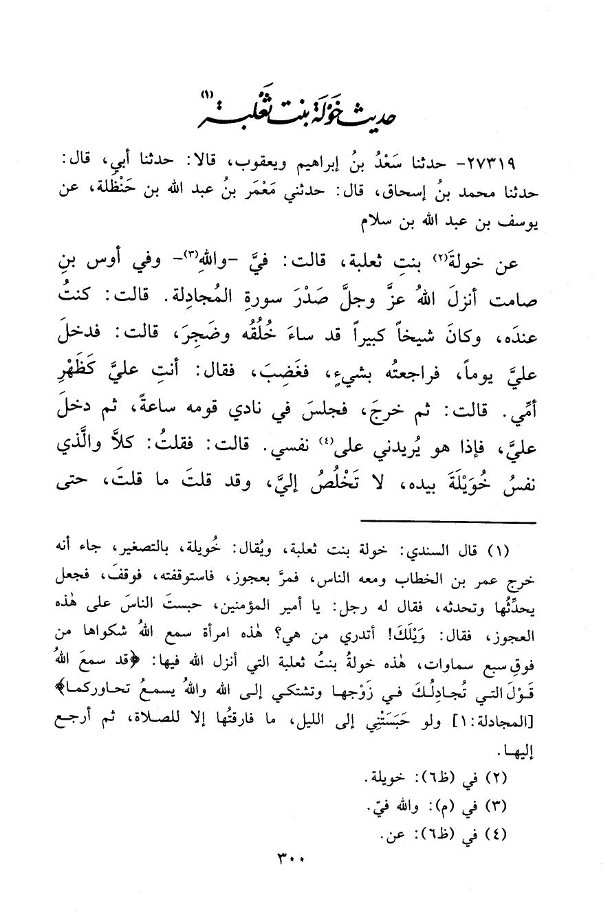 حَدِيثُ خَوْلَةَ بِنْتِ ثَعْلَبَةَ (١)