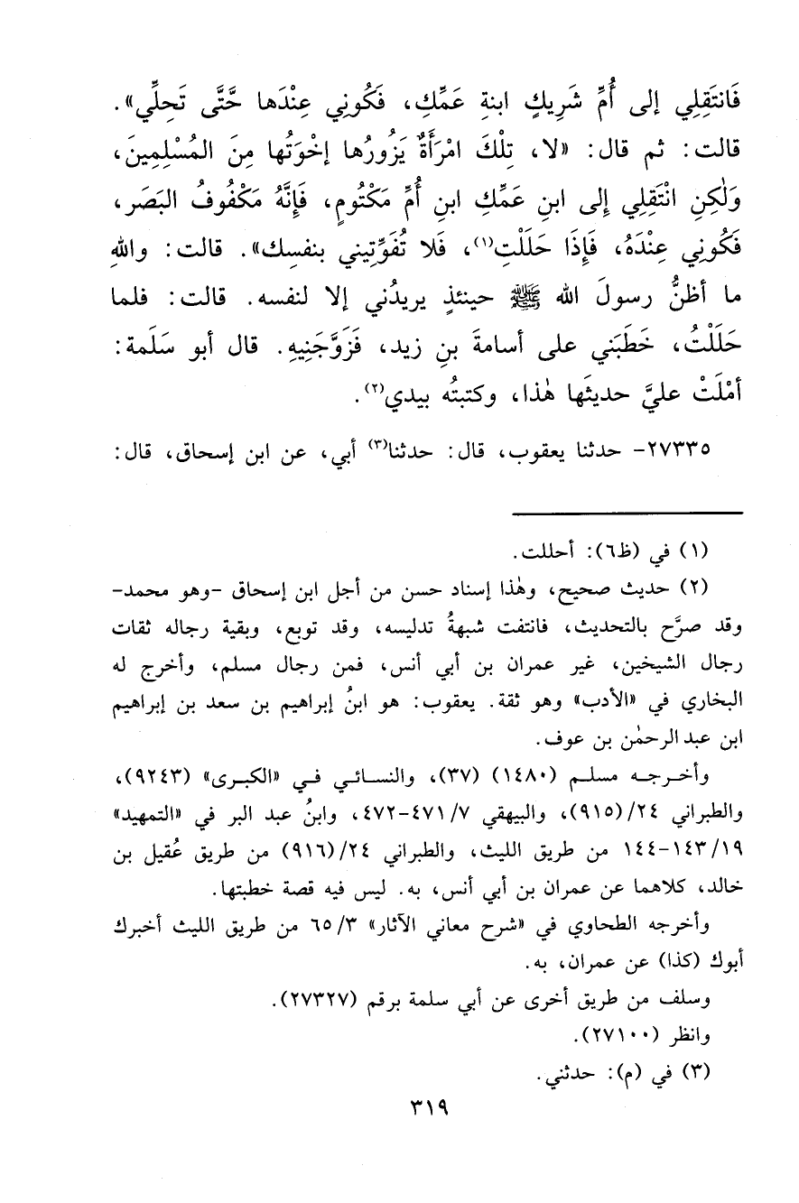 ٢٧٣٣٥ - حَدَّثَنَا يَعْقُوبُ، قَالَ: حَدَّثَنَا (٣) أَبِي، عَنِ ابْنِ إِسْحَاقَ قَالَ: