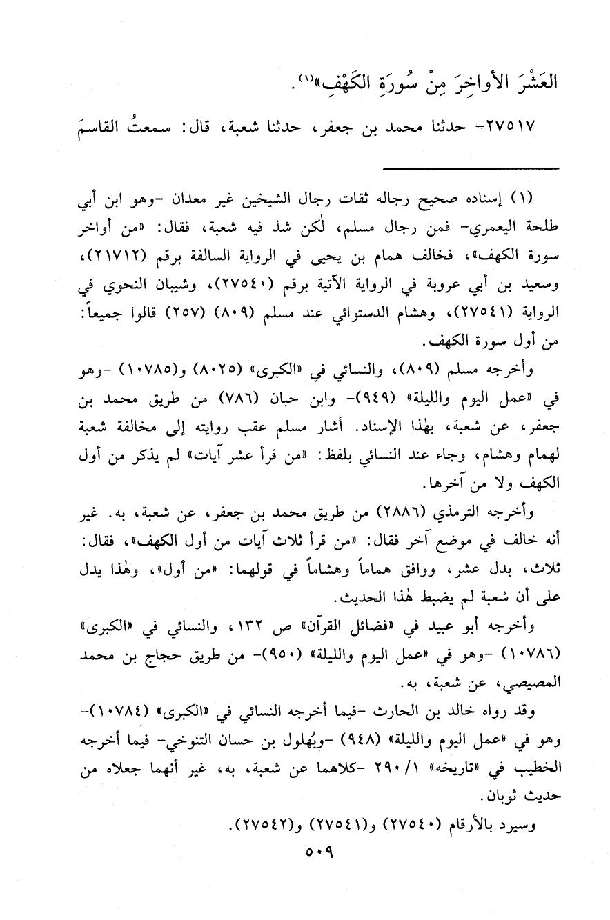 ٢٧٥١٧ - حَدَّثَنَا مُحَمَّدُ بْنُ جَعْفَرٍ، حَدَّثَنَا شُعْبَةُ، قَالَ: سَمِعْتُ الْقَاسِمَ