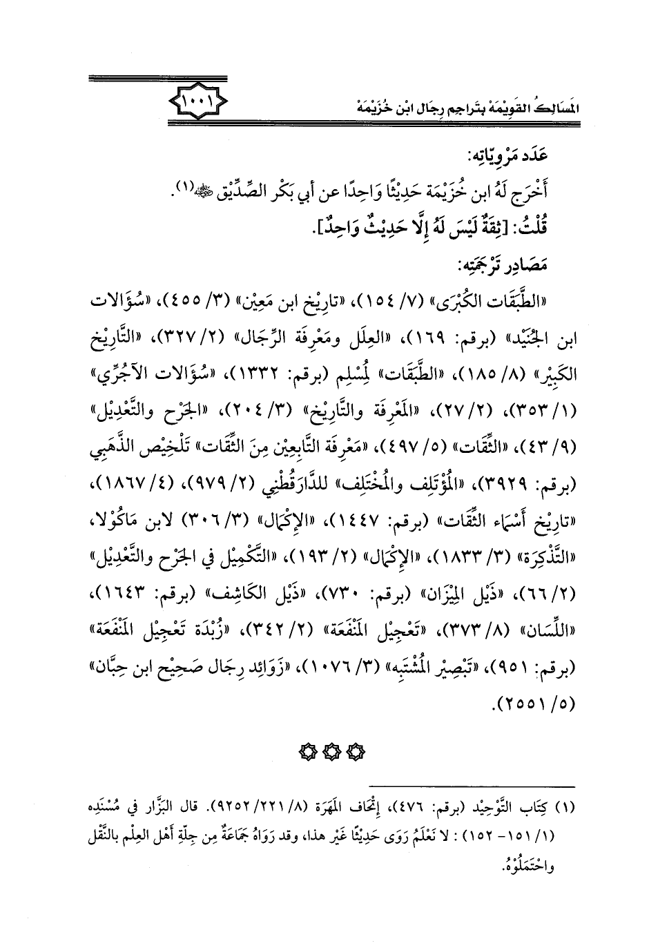 كتاب المسالك القويمة بتراجم رجال ابن خزيمة في الصحيح، والتوحيد، والفوائد (اسم الجزء: 2)