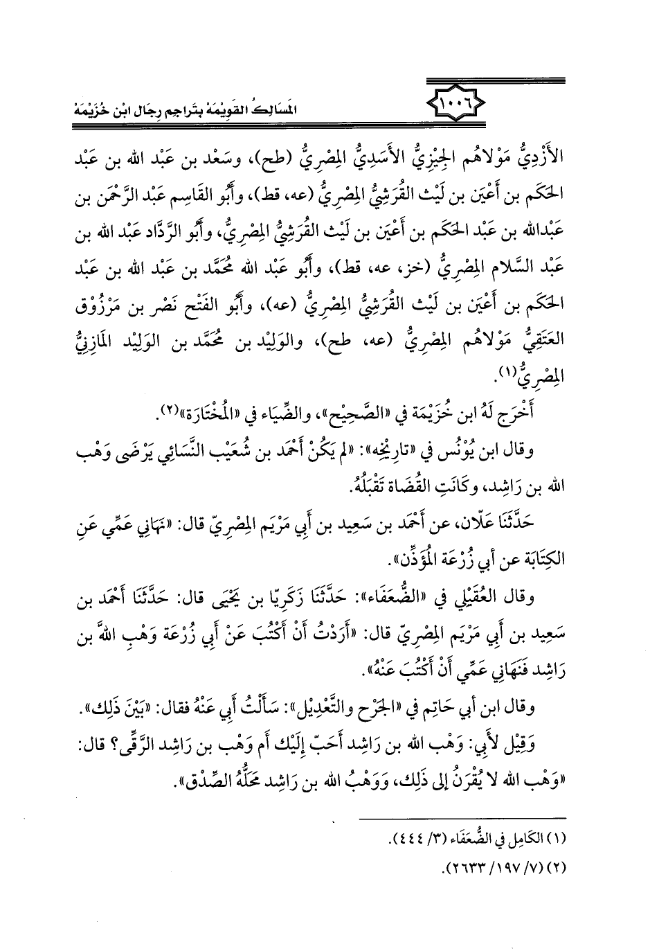 كتاب المسالك القويمة بتراجم رجال ابن خزيمة في الصحيح، والتوحيد، والفوائد (اسم الجزء: 2)