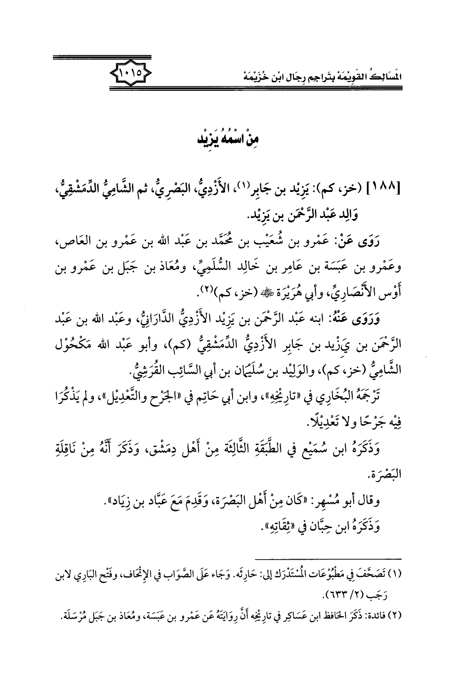 كتاب المسالك القويمة بتراجم رجال ابن خزيمة في الصحيح، والتوحيد، والفوائد (اسم الجزء: 2)