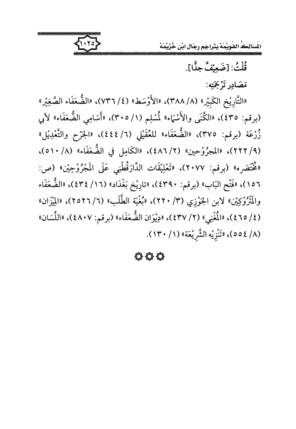 كتاب المسالك القويمة بتراجم رجال ابن خزيمة في الصحيح، والتوحيد، والفوائد (اسم الجزء: 2)