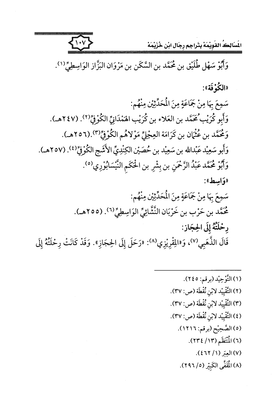 كتاب المسالك القويمة بتراجم رجال ابن خزيمة في الصحيح، والتوحيد، والفوائد (اسم الجزء: 1)