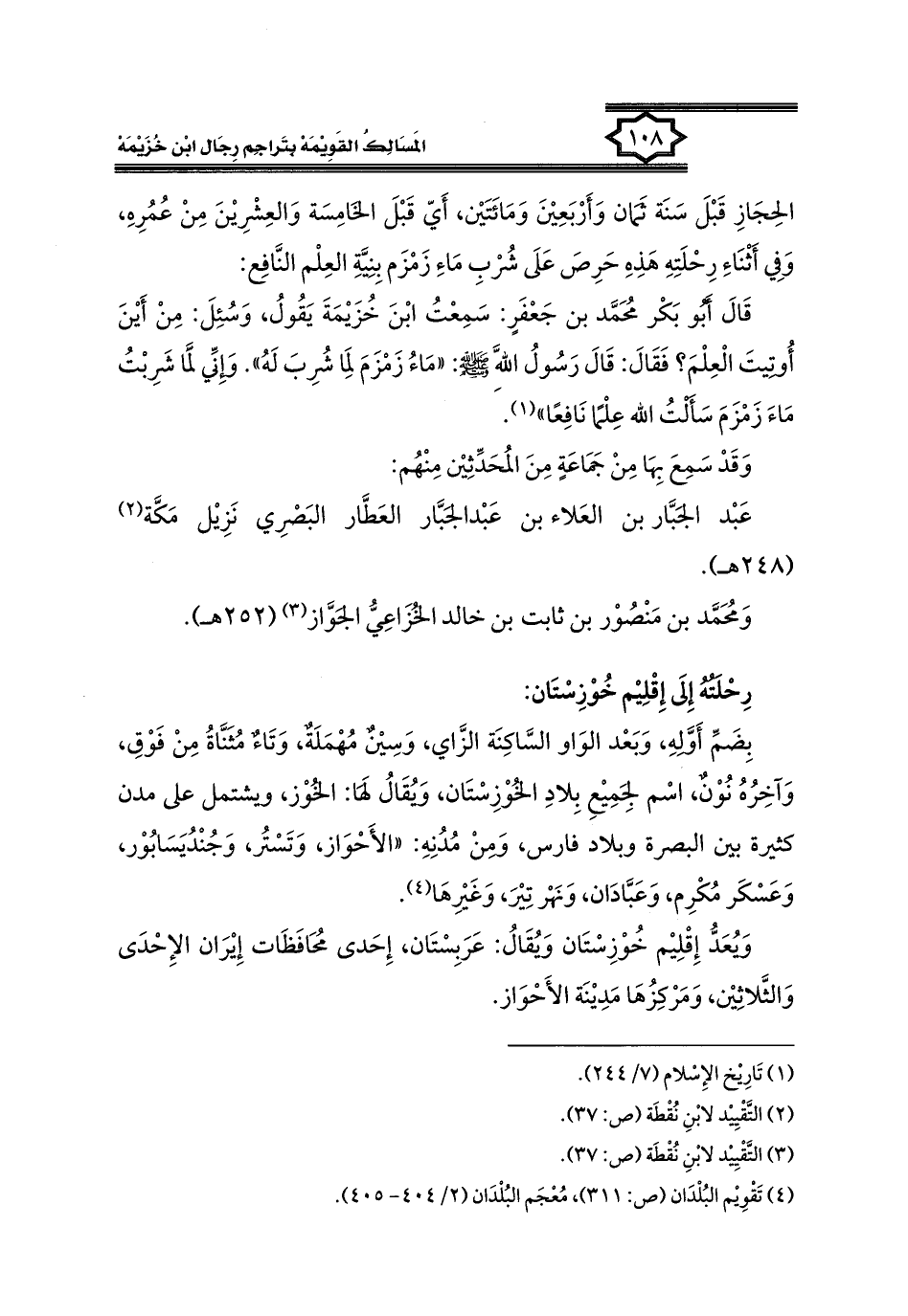 كتاب المسالك القويمة بتراجم رجال ابن خزيمة في الصحيح، والتوحيد، والفوائد (اسم الجزء: 1)