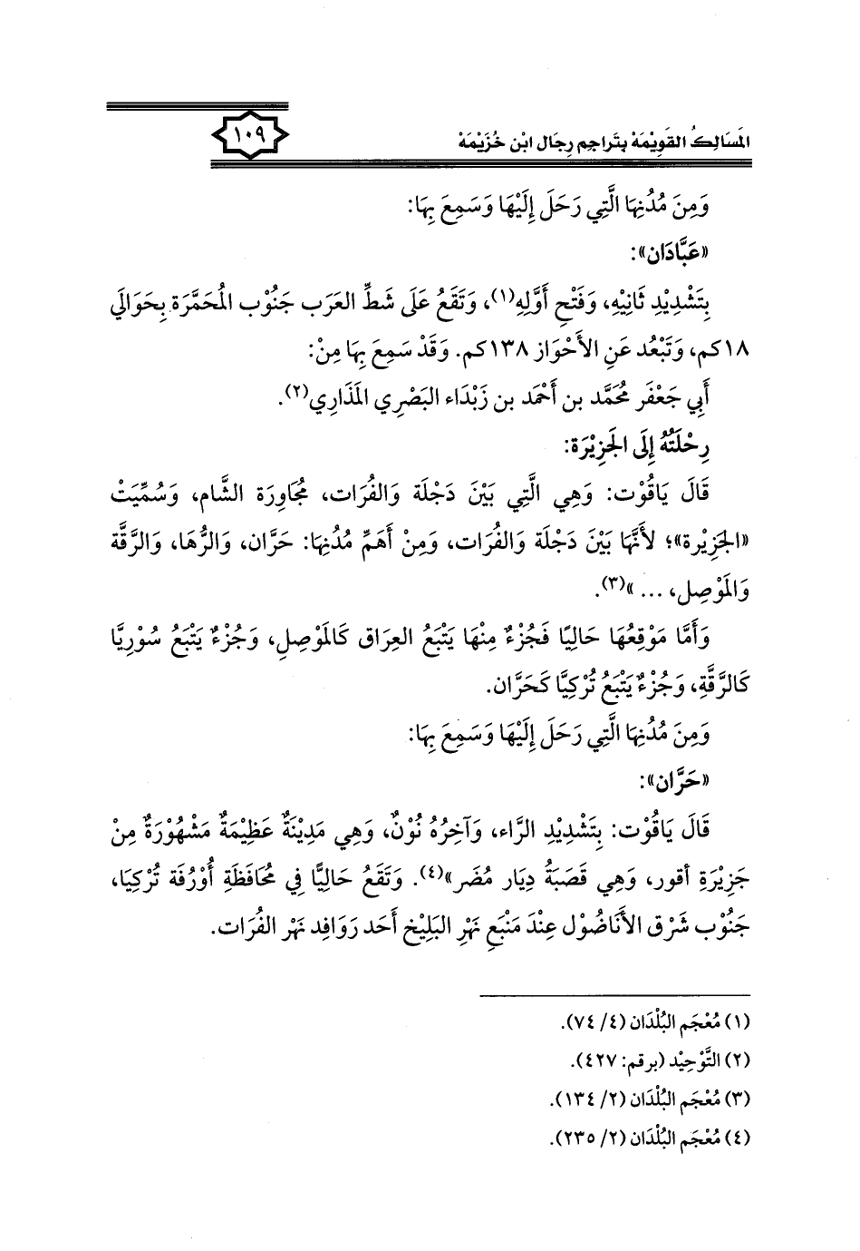 كتاب المسالك القويمة بتراجم رجال ابن خزيمة في الصحيح، والتوحيد، والفوائد (اسم الجزء: 1)