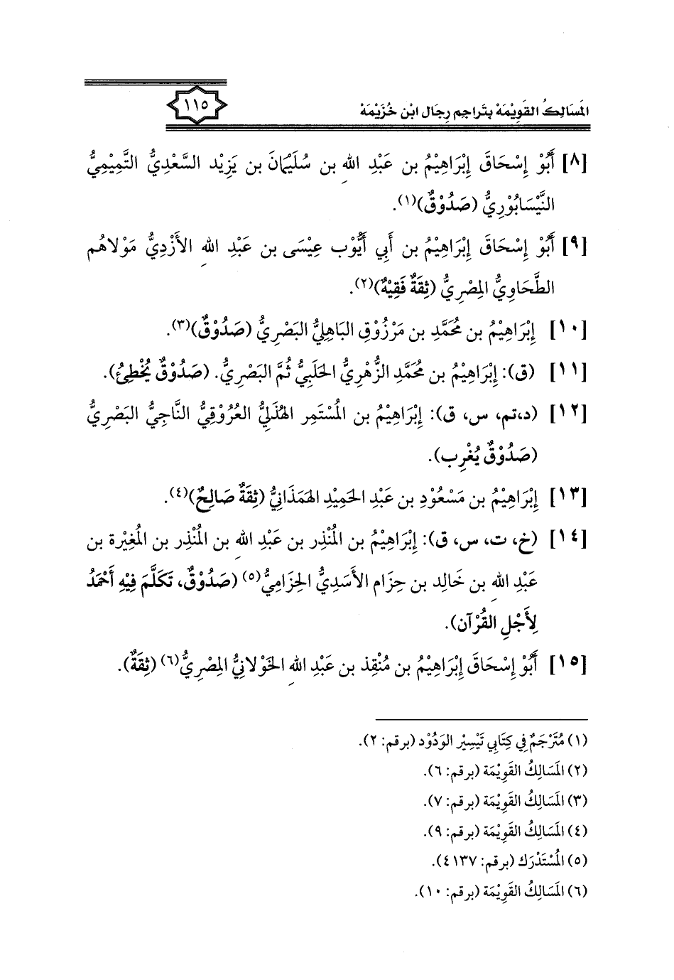 كتاب المسالك القويمة بتراجم رجال ابن خزيمة في الصحيح، والتوحيد، والفوائد (اسم الجزء: 1)