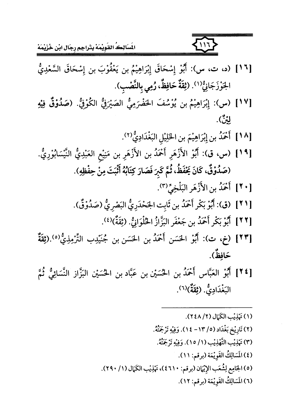 كتاب المسالك القويمة بتراجم رجال ابن خزيمة في الصحيح، والتوحيد، والفوائد (اسم الجزء: 1)