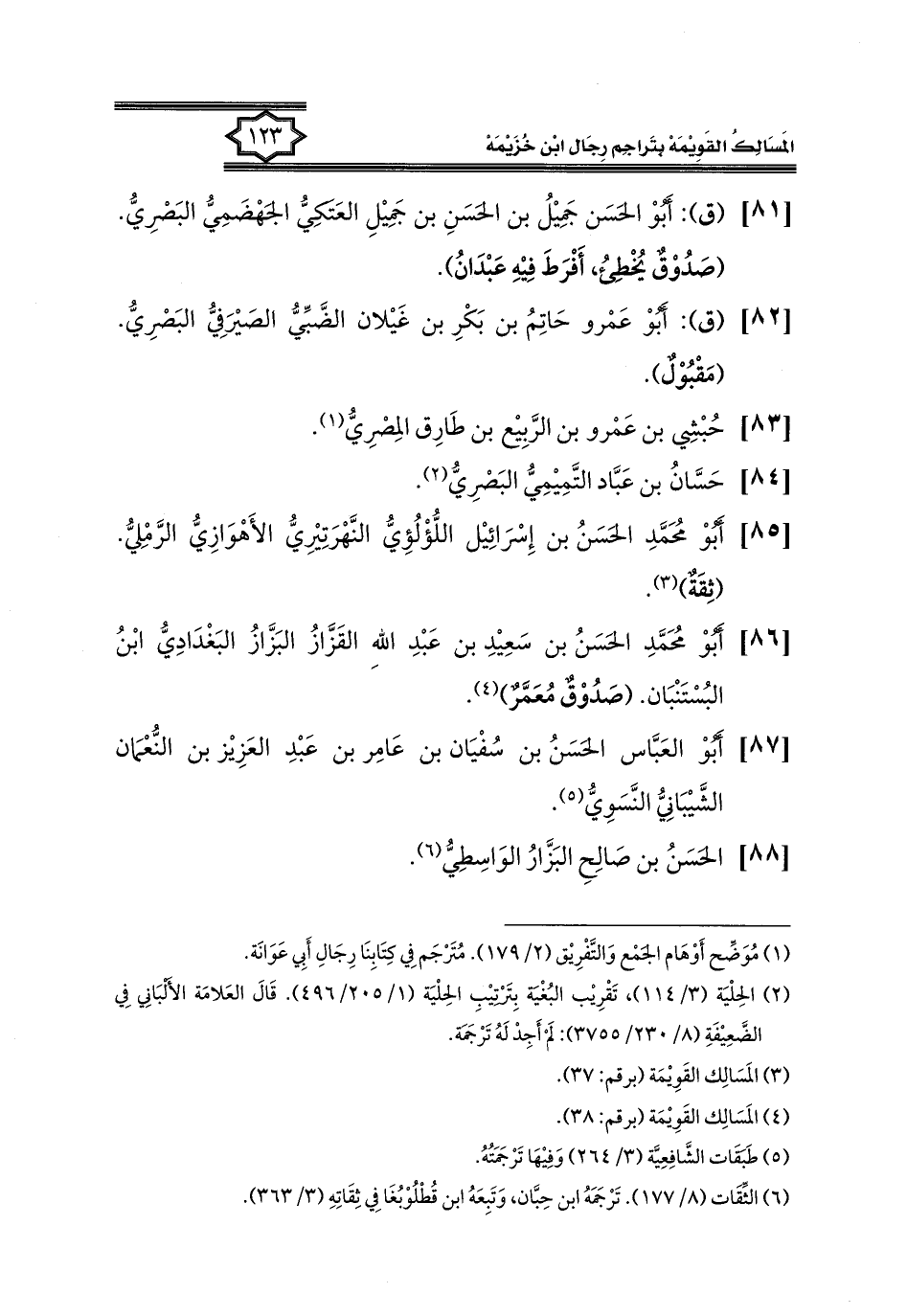 كتاب المسالك القويمة بتراجم رجال ابن خزيمة في الصحيح، والتوحيد، والفوائد (اسم الجزء: 1)