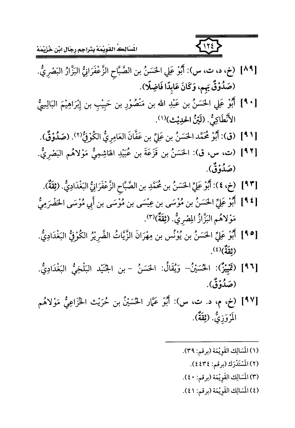 كتاب المسالك القويمة بتراجم رجال ابن خزيمة في الصحيح، والتوحيد، والفوائد (اسم الجزء: 1)