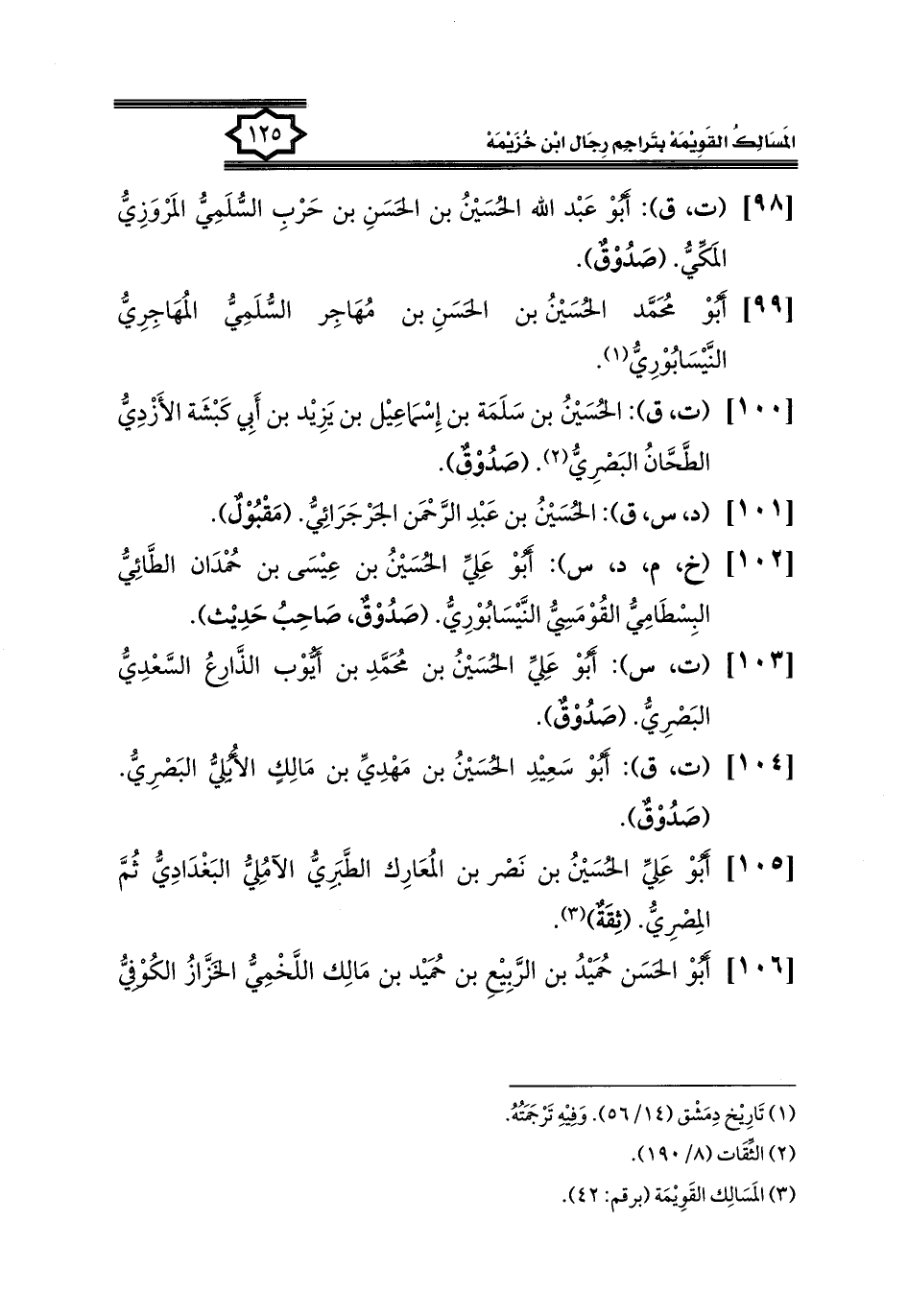 كتاب المسالك القويمة بتراجم رجال ابن خزيمة في الصحيح، والتوحيد، والفوائد (اسم الجزء: 1)