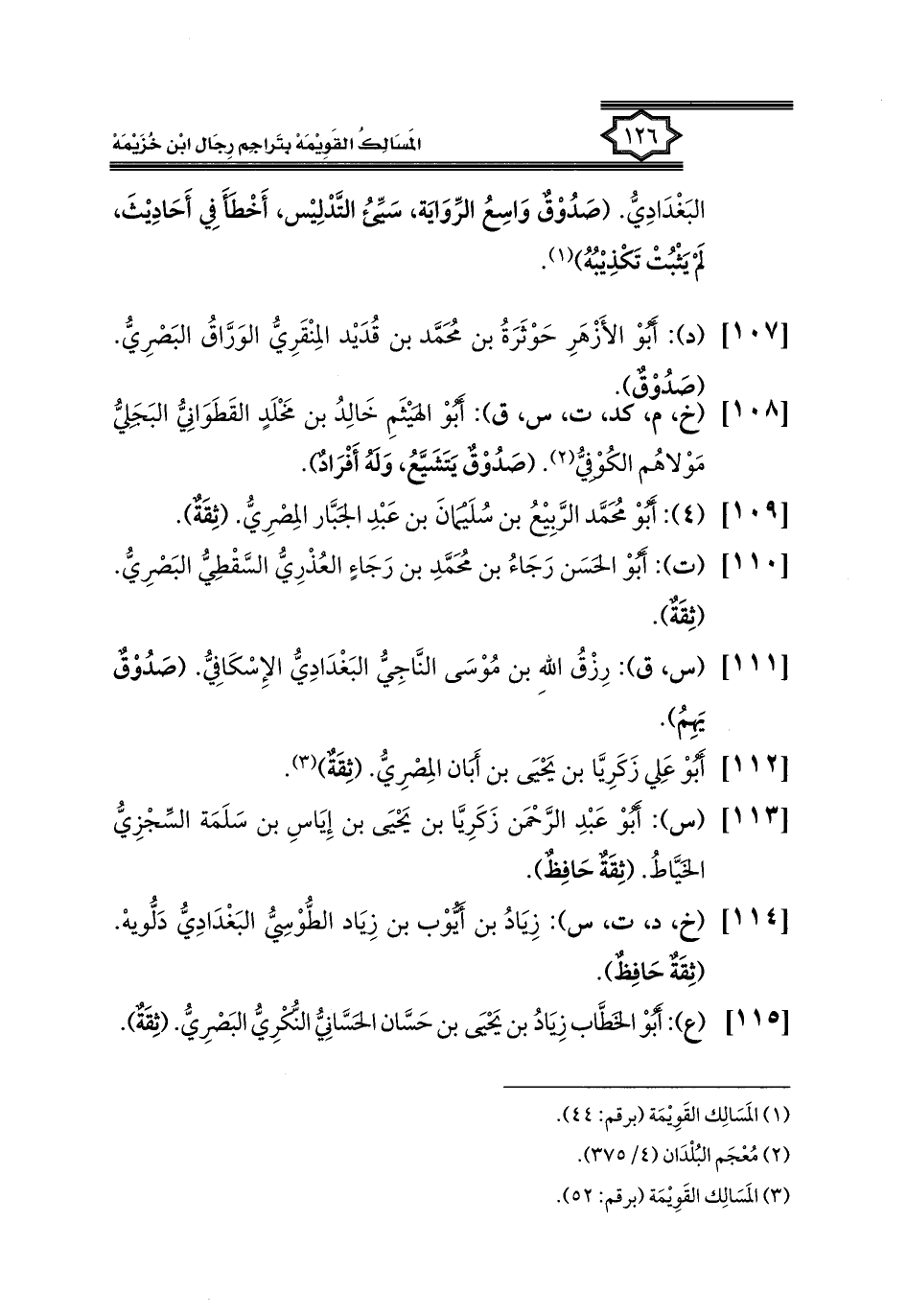 كتاب المسالك القويمة بتراجم رجال ابن خزيمة في الصحيح، والتوحيد، والفوائد (اسم الجزء: 1)