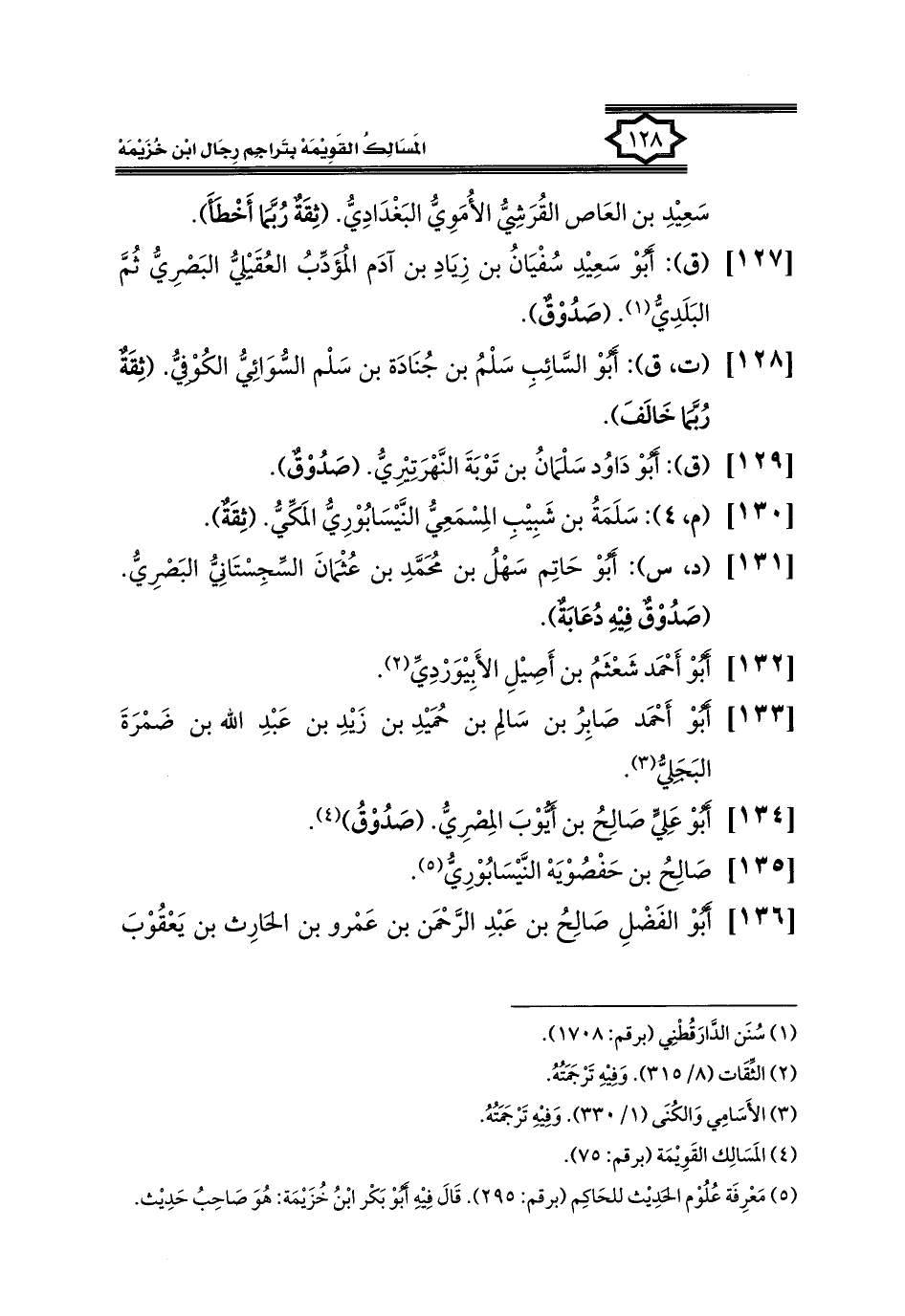 كتاب المسالك القويمة بتراجم رجال ابن خزيمة في الصحيح، والتوحيد، والفوائد (اسم الجزء: 1)