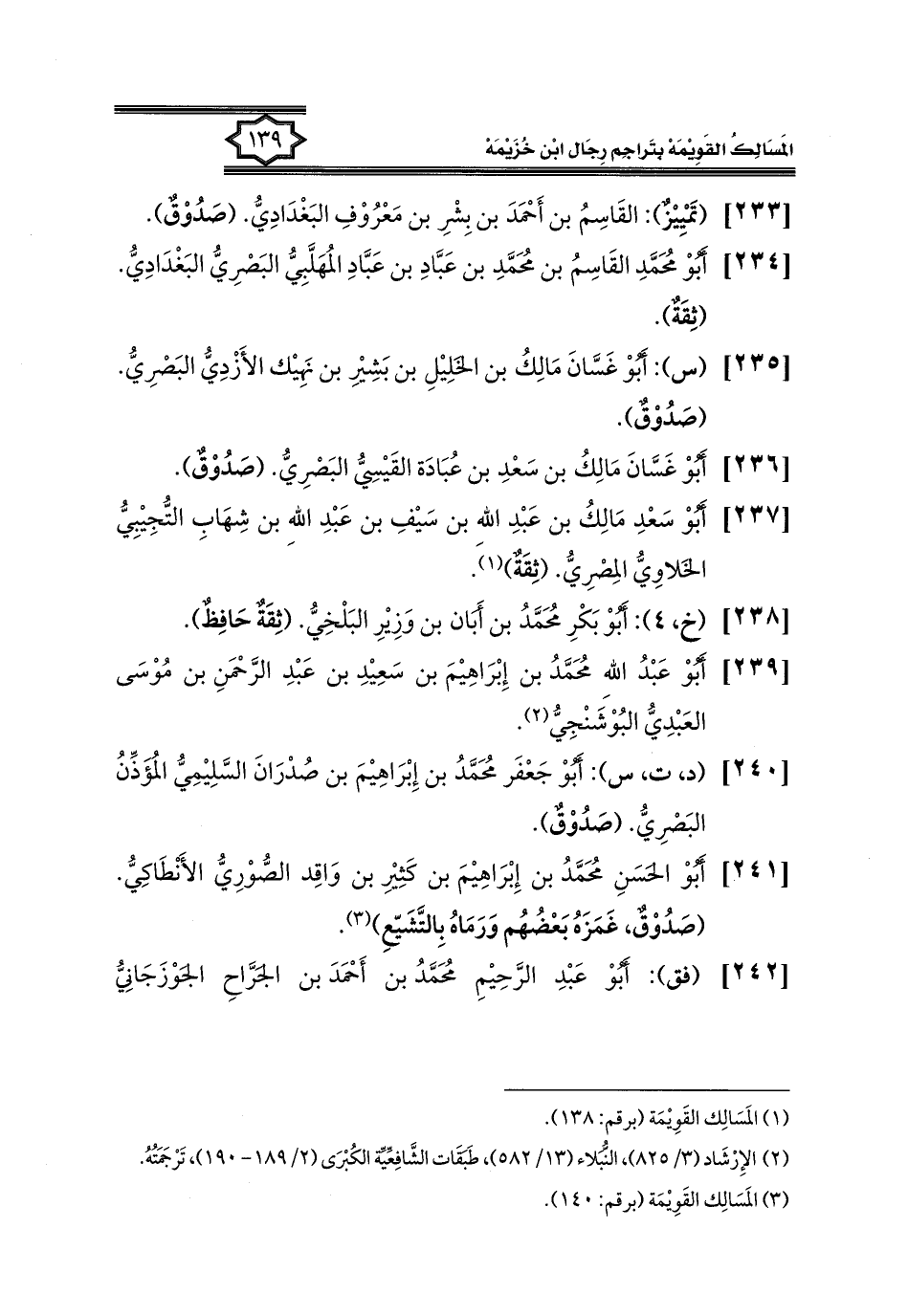 كتاب المسالك القويمة بتراجم رجال ابن خزيمة في الصحيح، والتوحيد، والفوائد (اسم الجزء: 1)