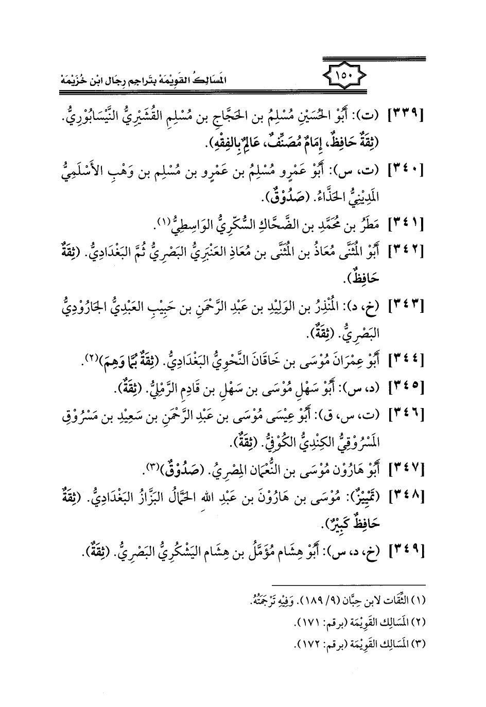 كتاب المسالك القويمة بتراجم رجال ابن خزيمة في الصحيح، والتوحيد، والفوائد (اسم الجزء: 1)